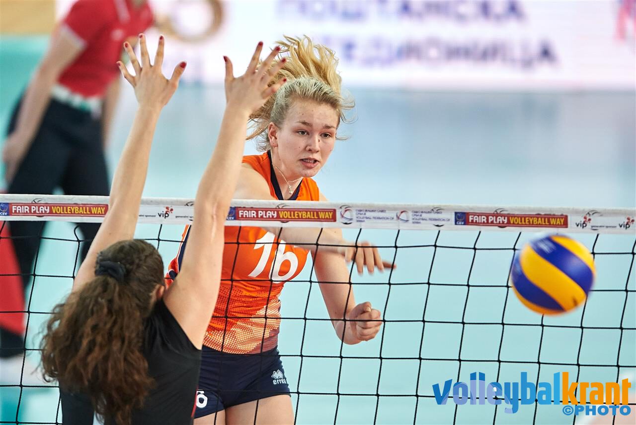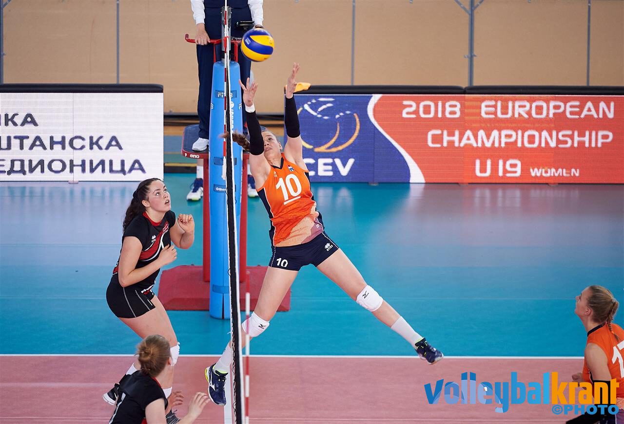 De Jong Oranje meisjes onder 19 zijn in Servië met een belangrijke overwinning tegen Denemarken gestart. Na een aarzelend begin kon Nederland vanaf 14-14 doordrukken en de eerste set winnen. In de tweede set startte Nederland sterk, maar Denemarken kwam terug. Vanaf 15-14 gaf Nederland weer gas en werd de tweede set ook afgetekend gewonnen. In de derde set bouwde Jong Oranje geleidelijk een voorsprong van zes a zeven punten op, maar op 18-17 voor Nederland werd het even spannend, aangezien Jong Oranje zeker niet foutloos speelde. Toen werd duidelijk dat Nederland een brede selectie met vele mogelijkheden heeft, waardoor bondscoach Julien van de Vyver steeds tijdig kon ingrijpen. In de derde set gaf Tess de Vries met negen punten de doorslag en werd de 3-0 overwinning veilig gesteld (25-20, 25-20, 25-19).