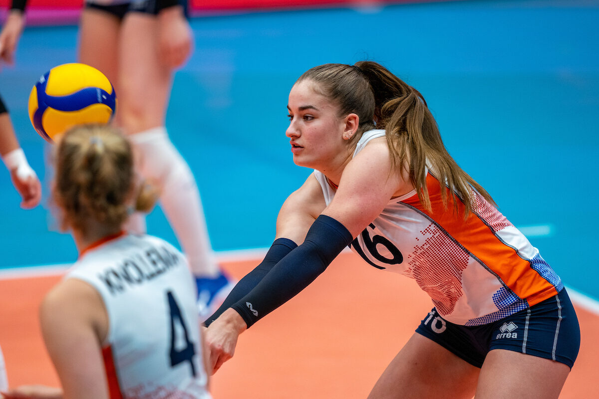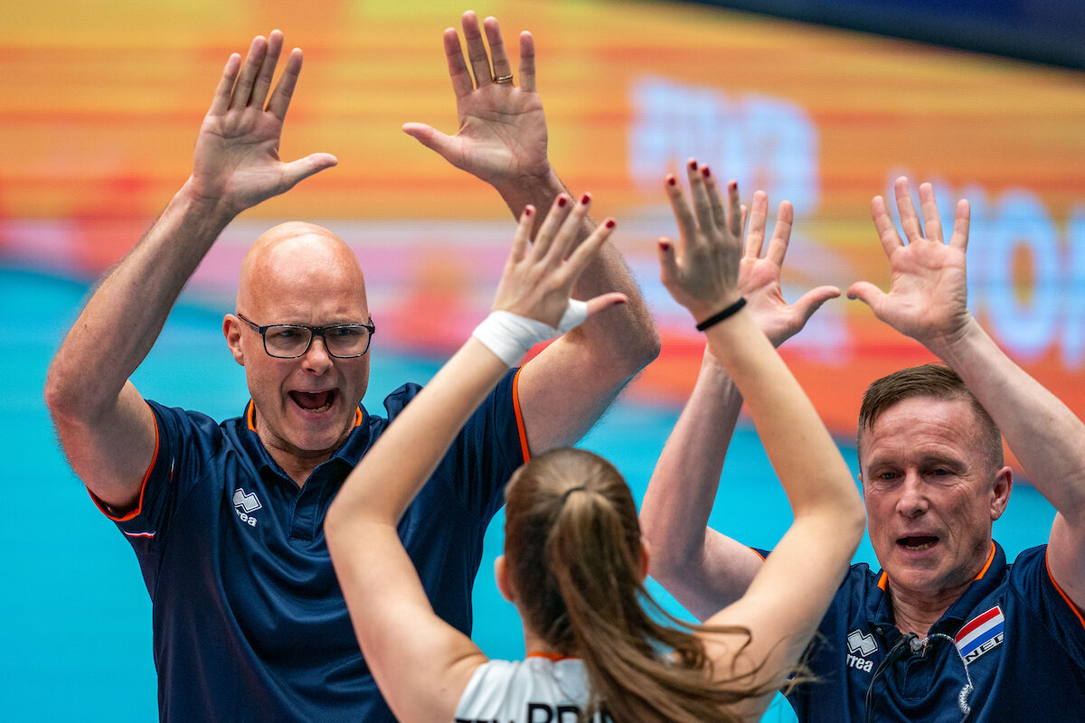 Dat zorgde bij de talenten van Marko Klok overigens niet voor extra spanning, maar juist voor vechtlust en focus. Jong Amerika probeerde in de passlijn Jolijn de Haan onder druk te zetten, die gisteren tegen Brazilië een mindere dag kende, maar zich dit keer uitstekende staande hield. Daar was ze zelf na de wedstrijd ook erg tevreden over. “Gisteren ging het minder en heb ik daar nog over gesproken met de coaches en een aantal meiden. Daardoor kon ik vol vertrouwen spelen vandaag.” Dat was ook in het veld te zien aan De Haan, die samen met Dambrink uitblonk in set één. Dambrink maakte gretig gebruik van de handen van de Amerikaanse blokkering en het was De Haan die het setpoint vernietigend hard tegen de grond sloeg. Daarmee stelde Jong Oranje de plek in de halve finales definitief veilig.