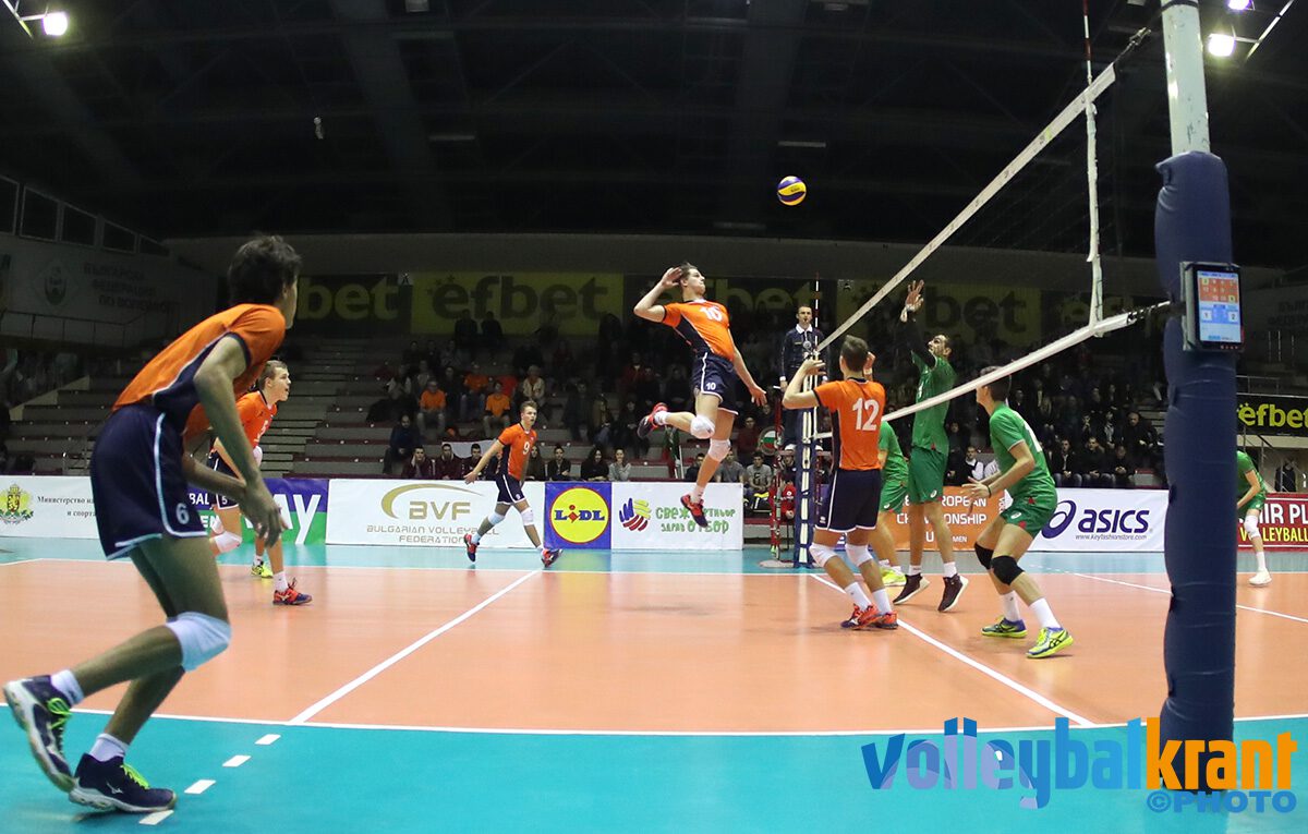 Het kwalificatietoernooi voor het Jeugd EK is begonnen. Nederland verliest de eerste wedstrijd met 3 – 1 van Bulgarije. Setstanden: 25 – 22, 20 – 25. 18 – 25 en 19 – 25.