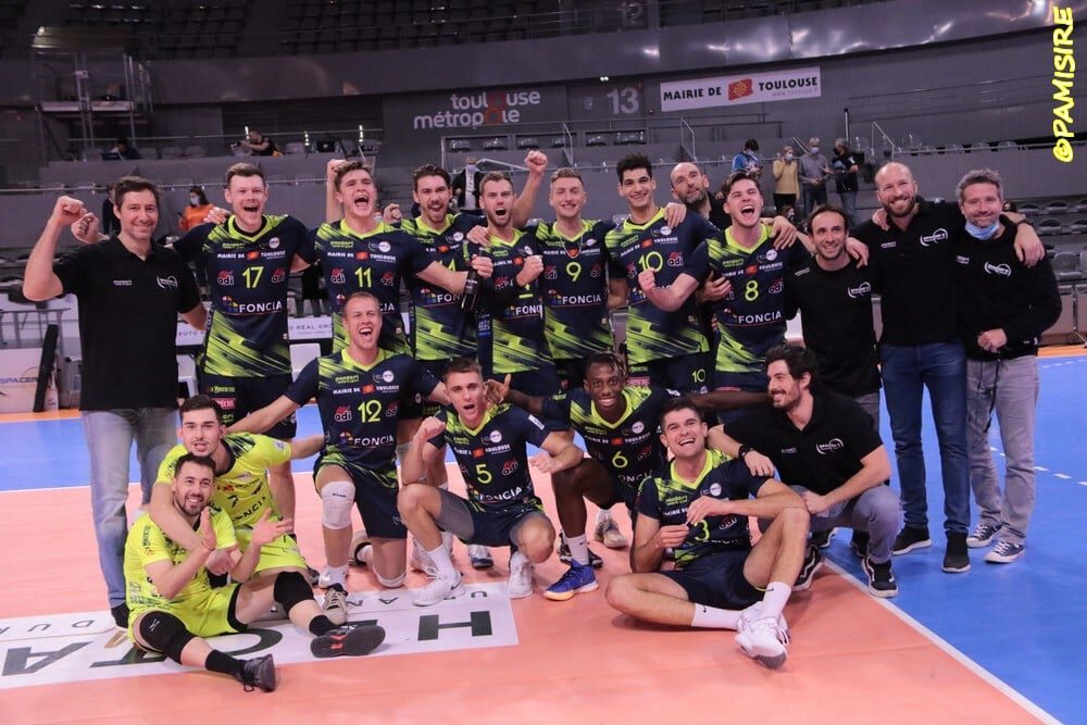 Vorige week ging het Toulouse van onze internationals onderuit in en tegen titelfavoriet Tours (0-3). Maar de ploeg van aanvoerder Jorna en Parkinson leek de nederlaag afgelopen dinsdag in de wedstrijd tegen Cambrai alweer te zijn vergeten. In de laatste wedstrijd van 2020 kwam het goed uit de startblokken. Gedurende de eerste set werd de kleine voorsprong uitgebreid door goed blokkerend en verdedigend werk. Met 25-19 was de openingsset voor de thuisploeg. In set twee gaf een klein dipje ruimte aan Cambrai om het heft in handen te nemen. Op de service van Jorna werden er nog twee punten teruggepakt, maar een voorsprong van drie punten bleek aan het einde net genoeg. Cambrai trok de stand gelijk (23-25). Diagonaal Cagliari begon voor Cambrai steeds meer te scoren en de stabiele side-out van Toulouse haperde even. Het kon dan ook niet voorkomen dat Cambrai naar een 1-2 voorsprong in sets ging (25-22). In set vier stond Toulouse constant aan de goede kant van de score. Parkinson bezorgde Toulouse de enige ace van zijn team, en pakte daarnaast ook belangrijke blokpunten. Ook Jorna scoorde vaak op slimme wijze zijn ballen, wat leidde in setwinst (25-22). In de vijfde set liet Toulouse zien over een sterk karakter te beschikken. Na een snelle achterstand stond vervolgens de blokkering als een huis. Met vijf directe blokpunten zette het de aanvalslinie van Cambrai op halt en speelde het vervolgens de wedstrijd knap uit (15-11). Vijf van de in totaal veertien blokpunten kwam uiteindelijk op naam van Michaël Parkinson. Met daarnaast een ace en 3 aanvalspunten (43%) was hij belangrijk. Op de diagonaal na was het Gijs Jorna die de meeste punten scoorde voor zijn team. Met een mooi aanvalspercentage van 54% en twee directe blokpunten kwam zijn totaalaantal op 15. Toulouse gaat met acht overwinningen en 19 punten als nummer acht van de Ligue A de kerst in.