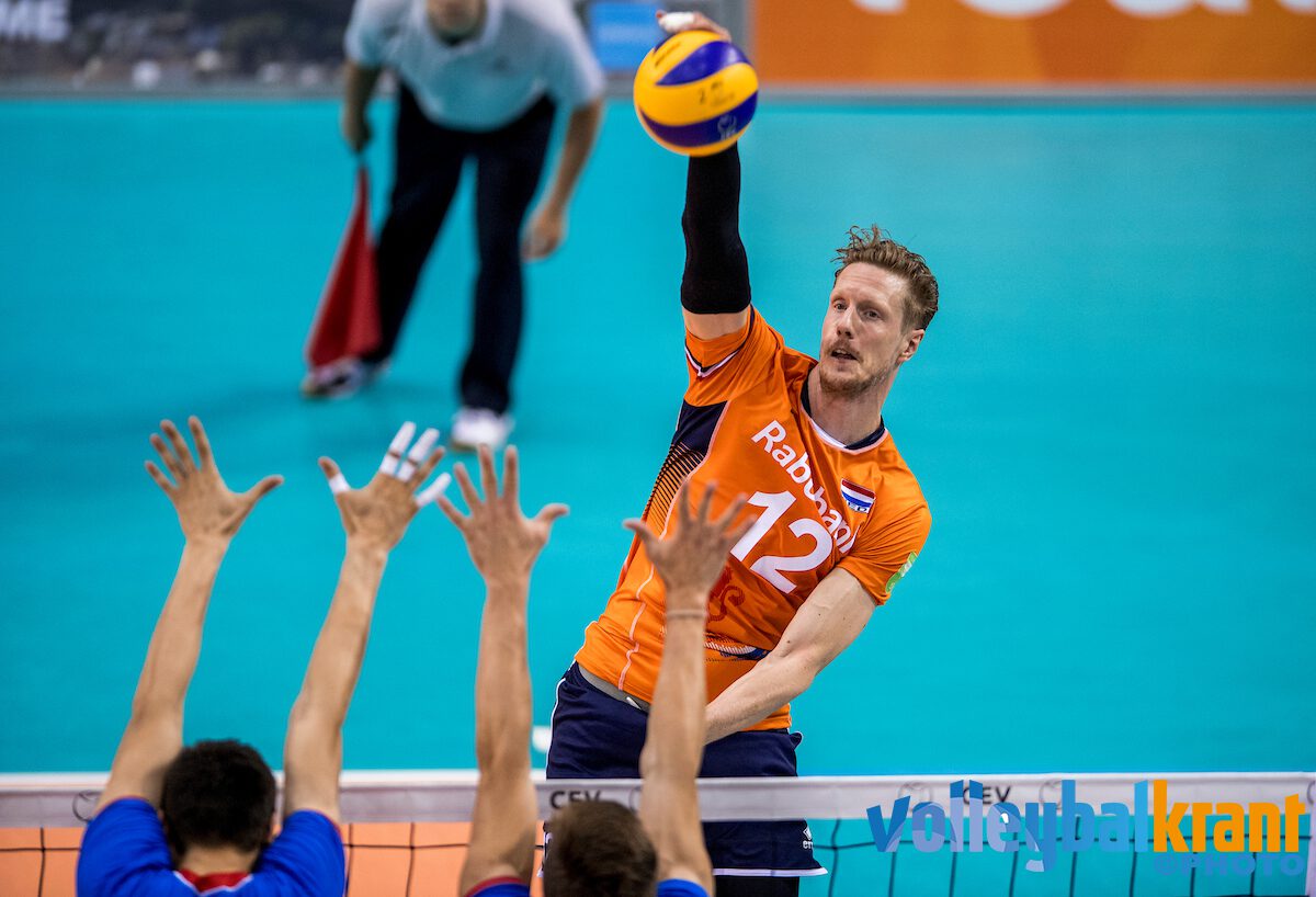 De 2.14 meter lange hoofdaanvaller plaatste zich vorig jaar met het Nederlandse team voor het WK dat voor Oranje woensdag begint in Bulgarije. Nadat Van Dijk in de zomer van 2017 een rustperiode nam, viel hij na de twee oefenwedstrijden om de Gelderland Cup tegen Italië als laatste speler af voor de selectie van bondscoach Gido Vermeulen voor het EK in Polen. Dat waren de laatste twee interlands voor de 240-voudig international.