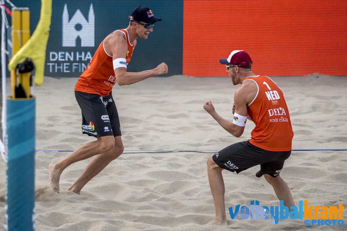 Vandaag stond de wedstrijd tegen het Belgische duo Koekelkoren/van Walle. Een bewogen wedstrijd, want vorig jaar op het WK werd er nog zeer verrassend van dit duo verloren. Daarnaast zijn de Belgen en de Nederlanders trainingsmaatjes en goede vrienden. Vooraf werd al voorspeld dat deze wedstrijd wel eens voor de poulewinst zou kunnen zijn. Het publiek in Den Haag kon er dus maar eens goed voor gaan zitten.