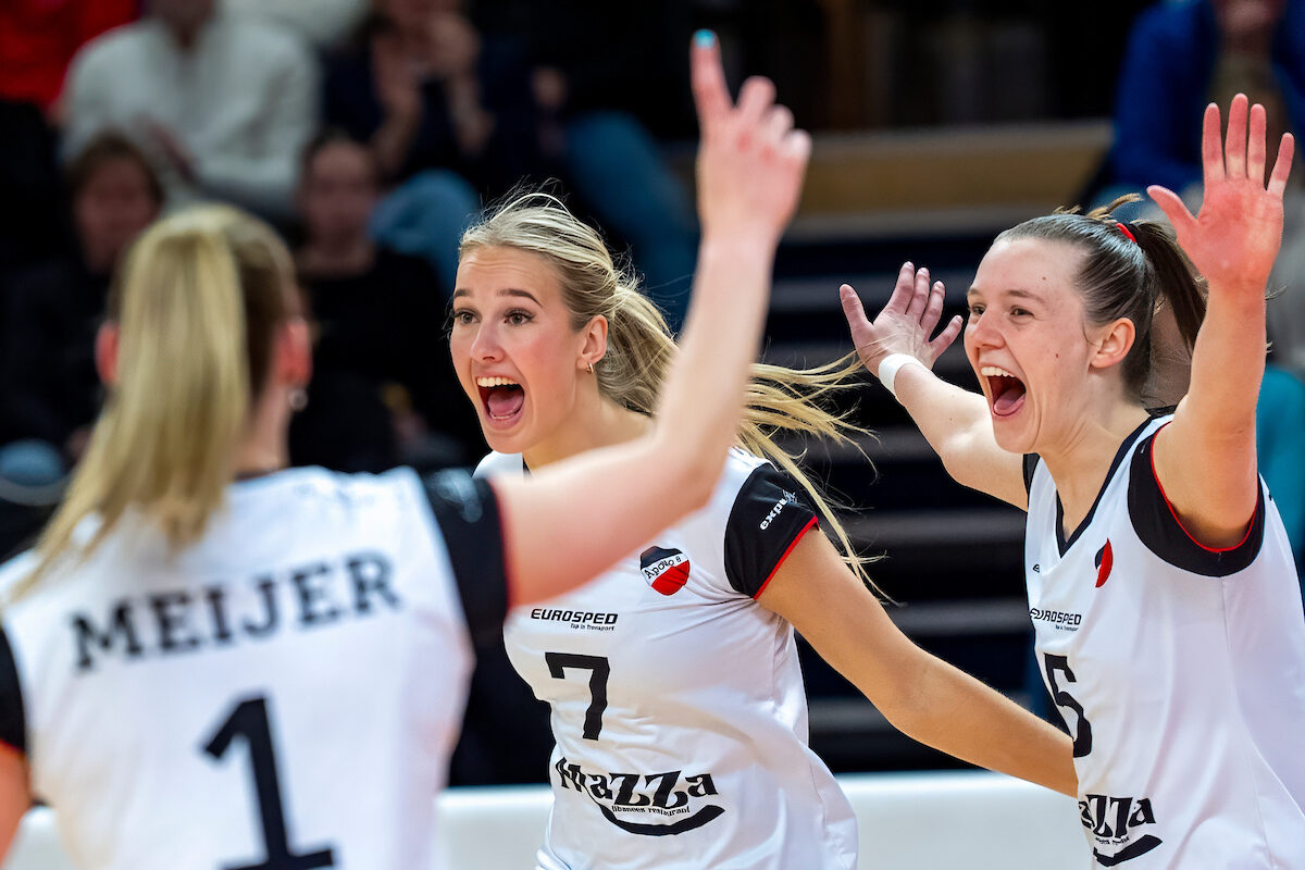 Dankzij een overtuigende overwinning op Meerdervoort VV Utrecht is Apollo 8 niet meer te achterhalen in de B-poule van de Eredivisie Dames. Apollo 8 domineerde van begin tot eind en wist de Utrechtse dames zelfs één set onder de tien punten te houden (25-22, 25-9, 25-17). Vooral blokkerend maakte Apollo 8 indruk met zoals wel vaker Roos Wessels als hoofdrolspeelster (12 punten, 7 killblocks). Wessels is dit seizoen ook koploper van het blokkeerdersklassement, voor haar teamgenoot Carlijn Koebrugge die in dit duel ook de nodige punten mee pakte (9 punten, 4 killblocks).