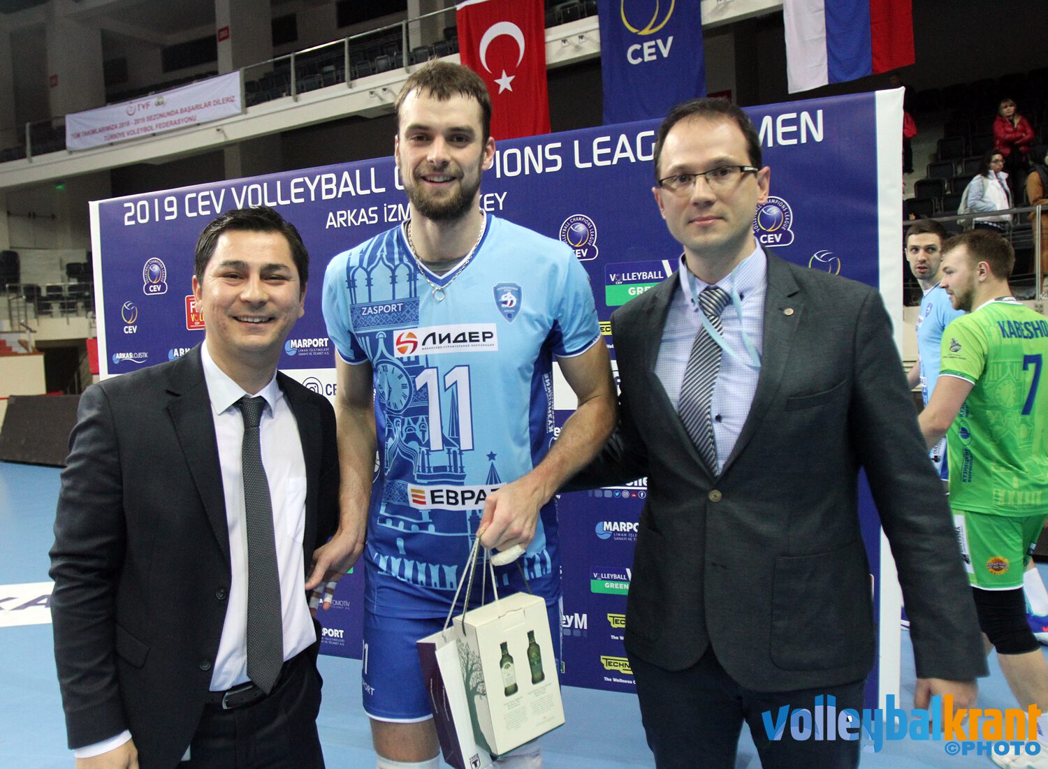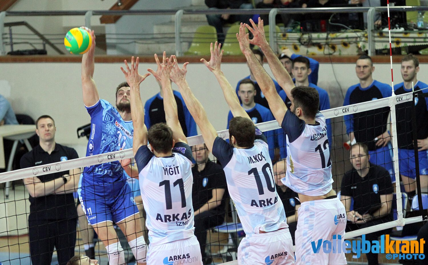 Titelverdediger Zenit Kazan heeft zich dinsdagavond geplaatst voor de kwartfinales van de Champions League. Roeselare kwam op bezoek in de Russische deelstaat Tatarstan nog wel verrassend op een 1-0 voorsprong, maar moest in het vervolg van de wedstrijd duidelijk hun meerdere erkennen in de recordkampioen. Dick Kooy bewees eens te meer dat hij in een goede vorm verkeert, hij werd na afloop van de wedstrijd tussen het Turkse Izmir en zijn Dinamo Moskou tot MVP verkozen. Dinamo won gemakkelijk en staat nu naast Perugia aan kop in Poule E.