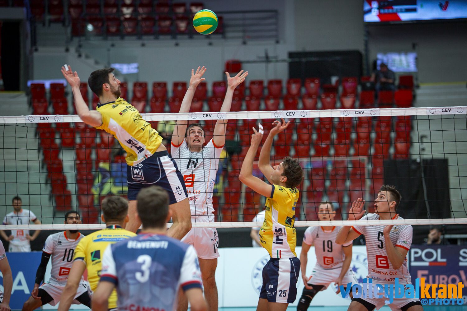 De wedstrijd die in Tsjechië gespeeld werd tussen Karlovarsko en Modena startte met maar liefst drie Nederlanders binnen de lijnen. Bij de thuisploeg zette Daan van Haarlem de lijnen uit, de gasten openden met Wessel Keemink en Luuc van der Ent. De Italianen hadden nog een kleine kans op een vervolg in de Champions League, maar daarvoor waren ze afhankelijk van resultaten elders.