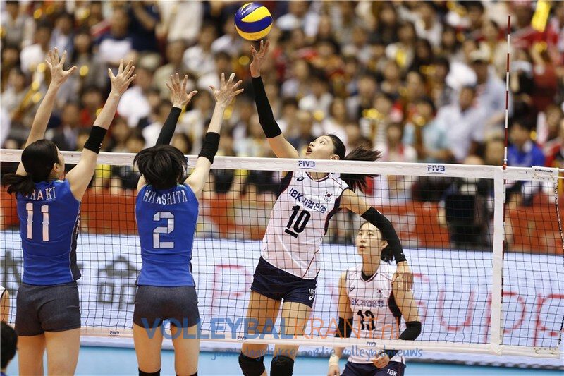 Daarna ging het opnieuw gelijk op tot Kim Hee-Jin met haar service het verschil maakte en de basis legde voor de 2-0 voorsprong. De Japanse bondscoach Masayoshi probeerde met wissels het tij te keren en daar slaagde hij ook in; met name de Japanse verdediging belette Kim Yeon-Koung van het scoren.