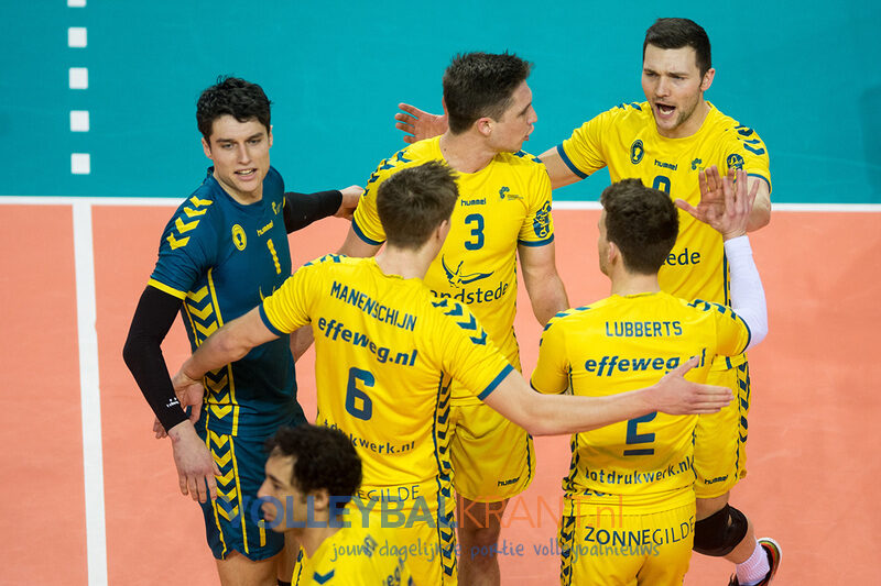 Landstede-coach Redbad Strikwerda had niet de beschikking over de geblesseerde Stijn van Schie, maar koos uit zijn verdere ruime selectie voor Frank Lubberts, Nico Manenschijn, Jairo Hooi, Steven Eertman, Tom van de Boogaard, Matt Hanley en libero Frits van Gestel.
