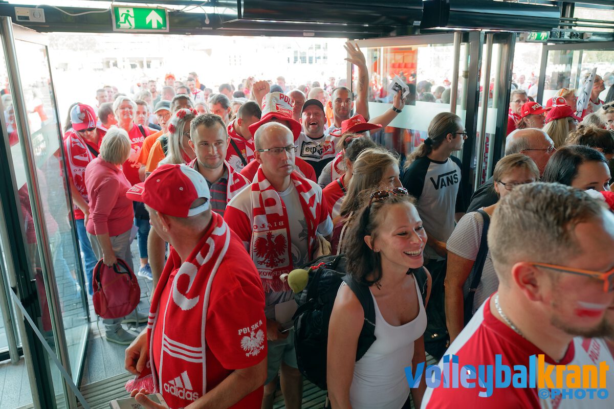 De onderste ringen rondom het speelveld werden grotendeels bezet door 6000 fanatieke Poolse toeschouwers die de longen uit hun lijf schreeuwen en met toeters en trommels een ongelofelijk kabaal maakten. De Nederlandse fans waren in de minderheid, ook op het gebied van geluid. Het zorgde voor een unieke sfeer.