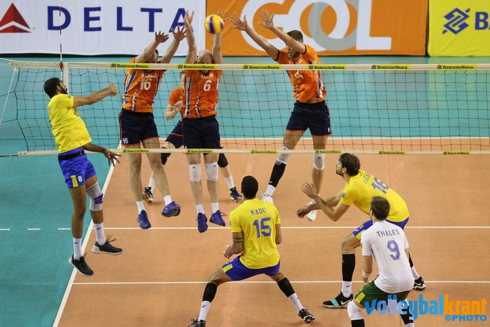 In het tropische Braziliaanse oord Manaus hebben de Lange Mannen afgelopen nacht ook hun tweede oefenwedstrijd tegen de Braziliaanse mannen verloren. Dat ging niet zonder slag of stoot. Bondscoach Gido Vermeulen verraste met een andere opstelling, met vijf andere spelers dan tijdens de eerste wedstrijd. Met Daan van Haarlem, Maarten Van Garderen, Thijs ter Horst, Jasper Diefenbach, Michael Parkinson en Wouter Ter Maat won Oranje de eerste set. Een aanvankelijke voorsprong van 8-6 maakten de Brazilianen ongedaan (14-16), maar aan het eind was Nederland toch sterker: 25-23. In de tweede set kwam Oranje er niet aan te pas. Via 4-8 en 12-16 werd het 17-25. In de derde én vierde set pakten de Lange Mannen steeds een voorsprong (respectievelijk 8-5 en 8-6) maar in het verloop van iedere set (15-16 en 13-16) bleek Brazilië toch nog iets te sterk: 23-25 en 19-25. Ter Maat maakte in totaal 14 punten, Ter Horst 12 en Van Garderen 11. De tegenstanders kwamen in Manaus ook met een sterk gewijzigd team op het veld. Beide coaches kunnen in deze fase naar het wereldkampioenschap immers nog volop experimenteren. Brazilië en Nederland spelen woensdag in Belém hun derde en laatste vriendschappelijke wedstrijd tussen de teams, om 19.00 uur lokale tijd (het is dan middernacht in Nederland).
