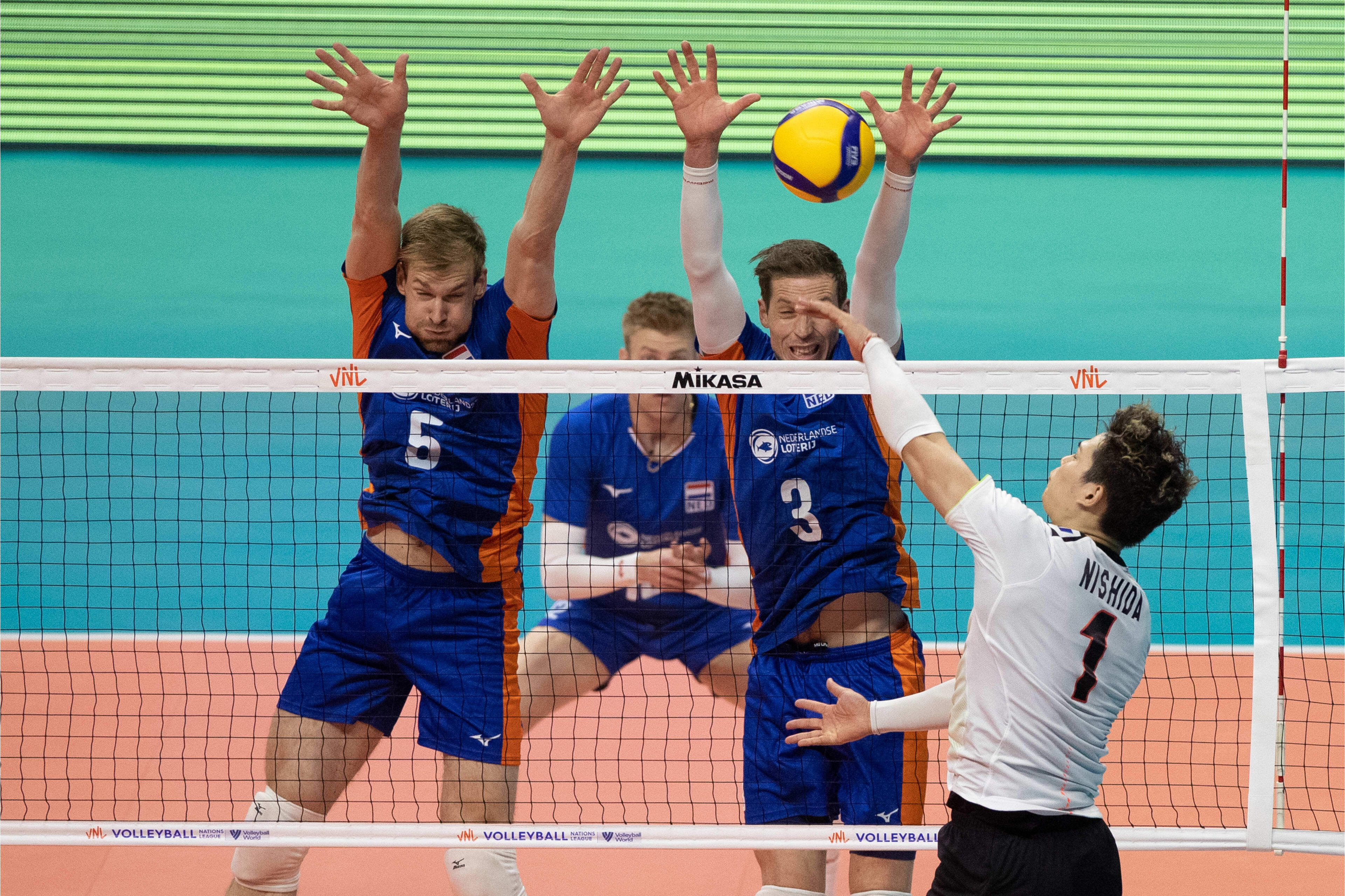 In het restant van de wedstrijd lag het initiatief voortdurend bij de Japaners. Een vroege voorsprong in set drie werd vanaf de servicelijn door Plak nog eigenhandig weggewerkt, maar het lukte Oranje niet om een voorsprong te pakken. Van Solkema kon Nimir een aantal keer goed vinden, maar de Lange Mannen bleven tegen een achterstand aan kijken. Exemplarisch voor het spel van Nederland was de freeball die op 20-22 over het net werd gepasst waardoor er wederom een kans om aan te sluiten onbenut bleef. Japan maakte gretig gebruik van de Nederlandse cadeautjes en won set drie met 22-25. In set vier was het Nederlandse verzet gebroken. Oranje keek vanaf het begin tegen een achterstand aan en onder leiding van diagonaal Yuji Nishida nam Japan een ruime voorsprong. De inbreng van Stijn van Tilburg voor Nimir en Ter Horst voor Tuinstra kwamen te laat, want het kwaad was al geschied. Uitblinker Nishida sloeg het laatste punt binnen voor Japan (17-25).