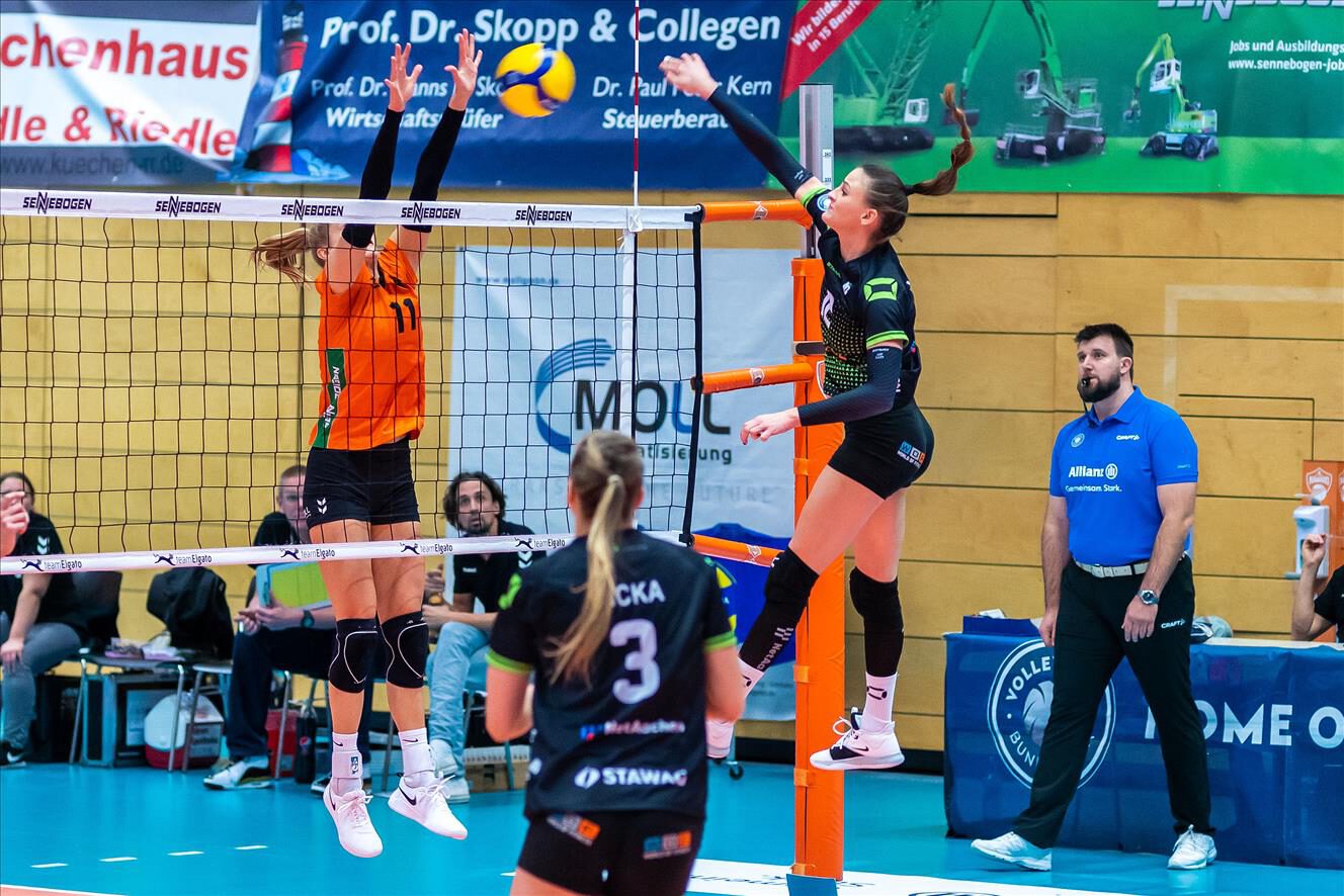 LIB Aachen moest even op gang komen, maar had daarna niet veel moeite met NawaRo Straubing (27-25, 18-25, 16-25 en 14-25). Bij NawaRo Straubing startte Iris Scholten in de basisi. Aan het begin van de 3e set werd ze naar de kant gehaald. Ze wist 7 aanvallende punten te scoren voor haar ploeg. Eline Timmerman werd bij Aachen pas in de 3e set in het veld gebracht. Ze was met drie aces vooral succesvol met haar service.