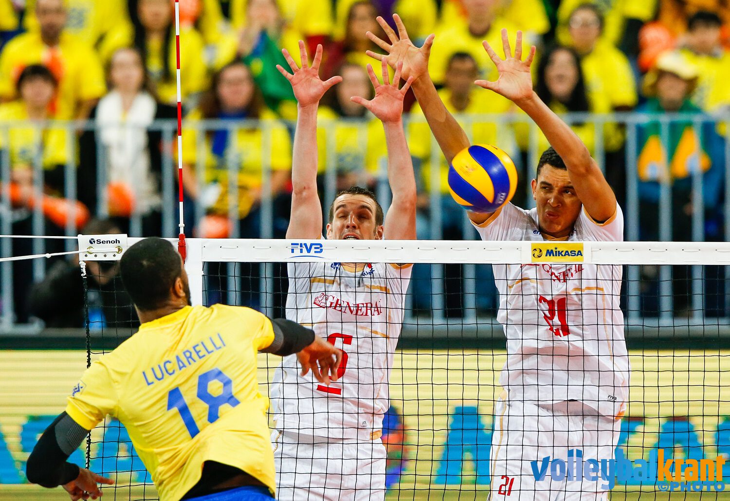 Bijgestaan door de 23.000 Braziliaanse fans knokte de thuisploeg zich terug in de wedstrijd. Vooral Lucarelli was een ware plaaggeest voor de Fransen (25-19).