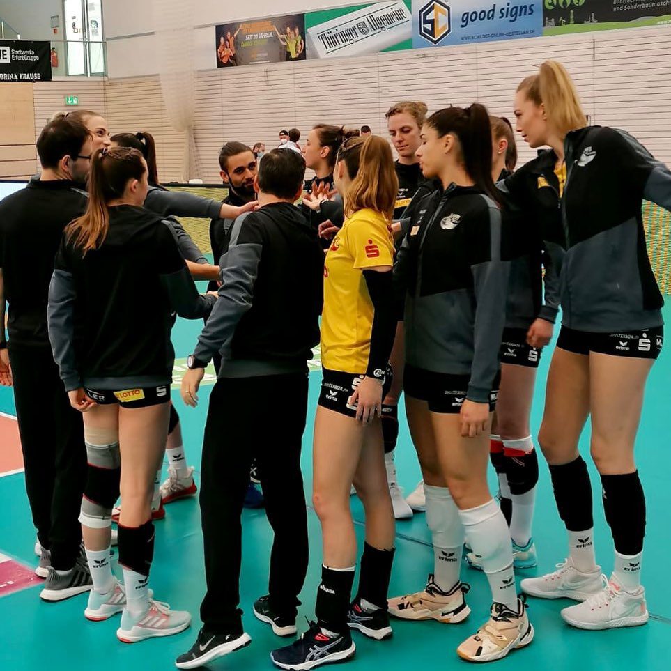 VfB Suhl liet zich met Laura de Zwart bijna verrassen door hekkensluiter Erfurt, dat vocht voor een laatste kans op behoud in de Bundesliga. Erfurt kwam met 2-0 voor (25-23 en 27-25),maar Suhl wist de schade beperkt te houden. Na 23-25, 14-25 en 8-15 werd het toch nog een overwinning voor de bezoeksters. De Zwart speelde een prima wedstrijd, met 14 punten waarvan 5 met een killblock.