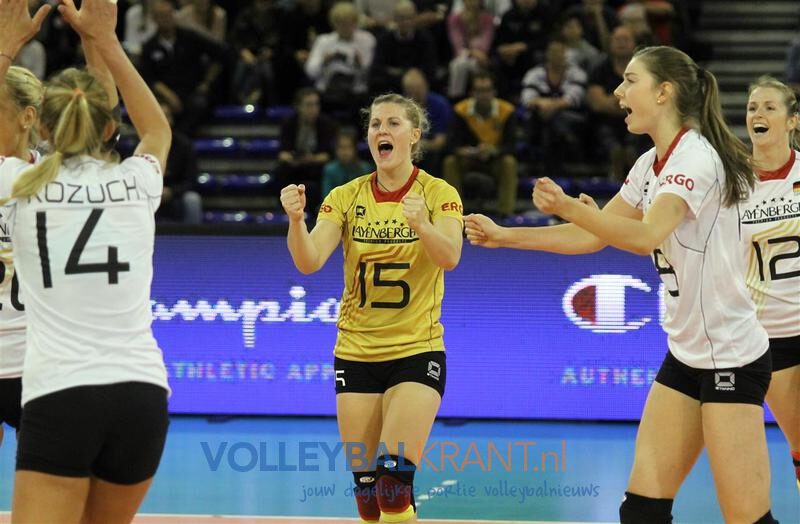 Duitsland is definitief zeker van een plek in de knock-outfase. Die Schmetterlinge wonnen met 3-0 van Tsjechië, waardoor zij beslag leggen op de tweede plaats in poule D. Duitsland speelt woensdag in Antwerpen tegen Azerbeidzjan of Hongarije.