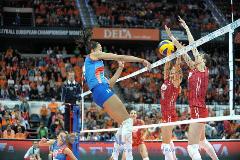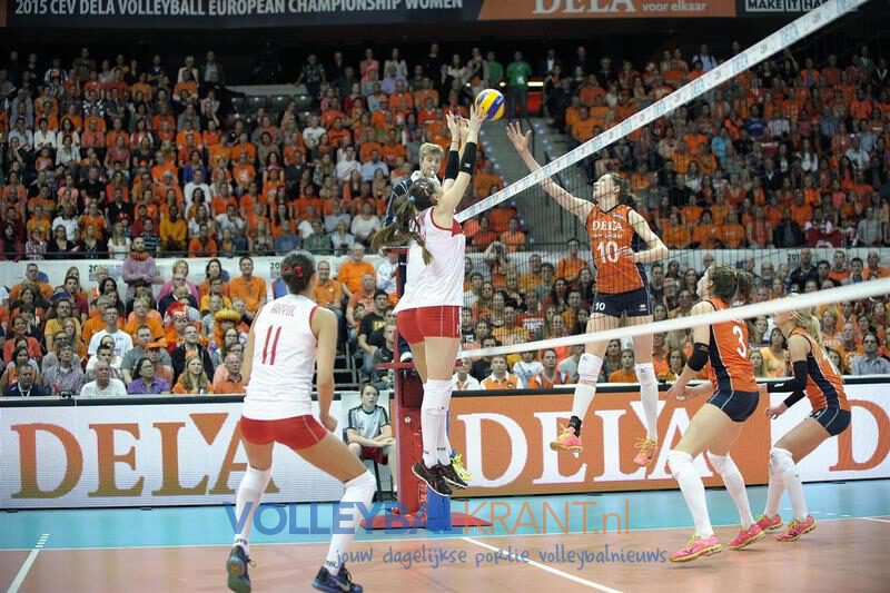 De Turkse volleybalsters worden in eigen land de koninginnen van het net genoemd en ze bezorgden de Nederlandse aanval en blokkering ook een hoop werk. Met name Anne Buijs en Lonneke Sloetjes wisten echter gaten in de Turkse muur te slaan.