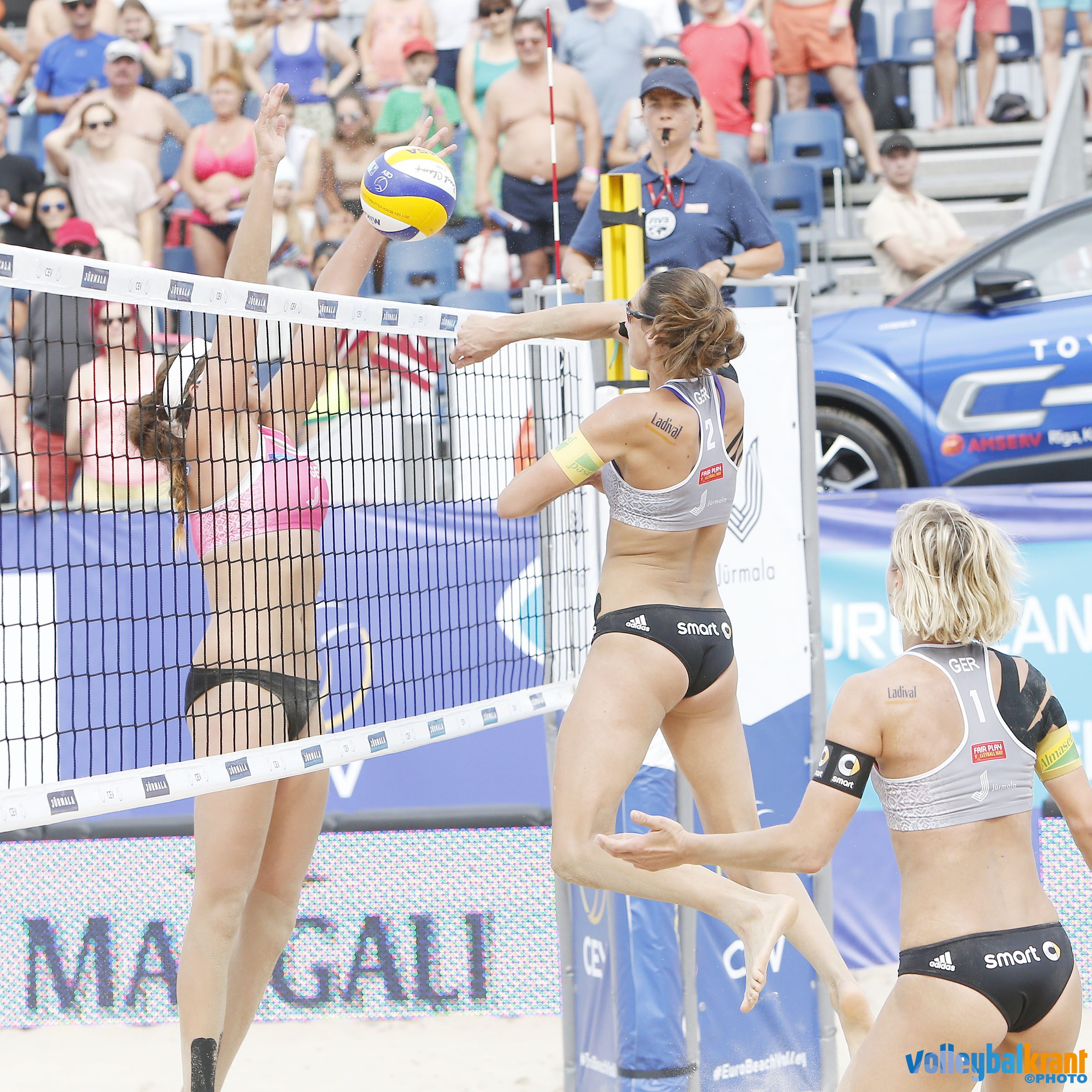 Laura Ludwig en Kira Walkenhorst mogen zich de komende tijd nog steeds wereldkampioen én olympisch kampioen noemen, maar de Europese titel gaat dit jaar aan hun neus voorbij. In de kwartfinale werd het duo uitgeschakeld door landgenoten Glenzke en Grobner.