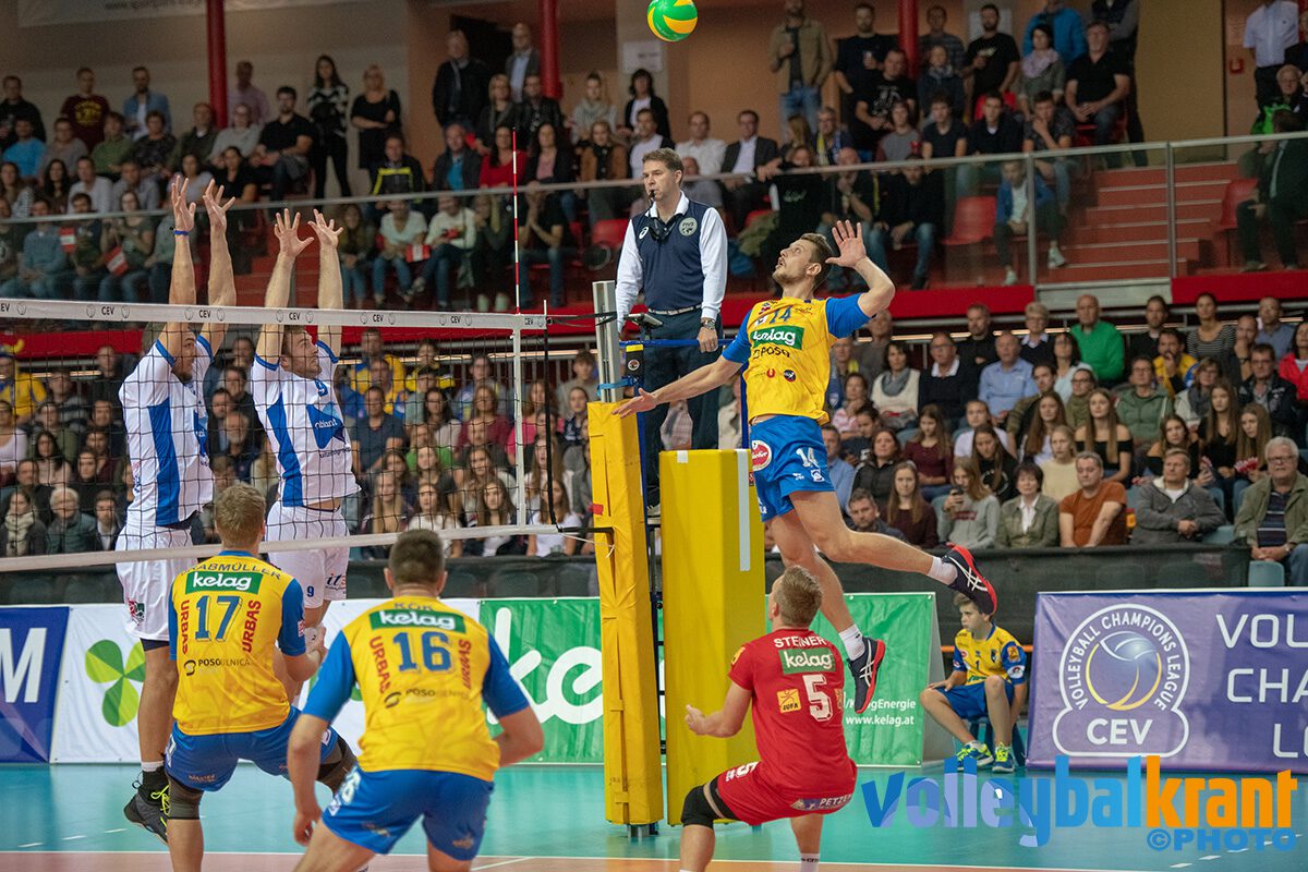 In een zeer spannende tweede set kon Lycurgus tegen het einde het gat met de Oostenrijkse kampioen dichten. Na de 23-18 tussenstand verloren de Groningers toch nog met 26-24, nadat aanvoerder Wytze Kooistra op setpoint tegen de bal van achter de driemeterlijn uitsloeg.