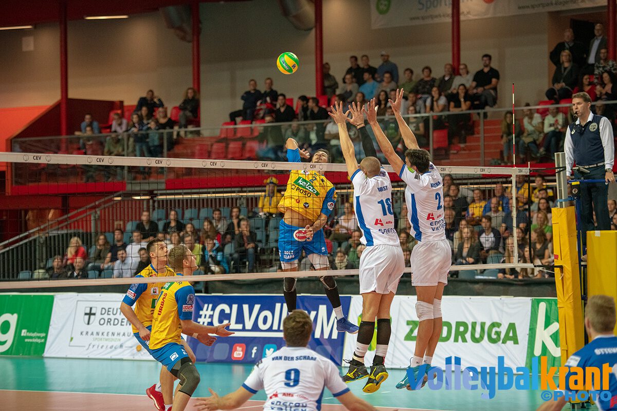 Met Dennis Borst, de man die afgelopen zaterdag tegen Taurus nog door zijn enkel ging, in de basis begon Lycurgus sterk aan het do-or-die duel in Klagenfurt. Spelverdeler Stijn Held kon zijn team over alle schijven laten aanvallen, waar Posojilnica het vooral van zijn diagonaalspeler Matej Mihajlovic moest hebben. Het collectief van Lycurgus stond goed, gaande de set namen ze steeds meer afstand. Met 20-25 wonnen ze de openingsset.