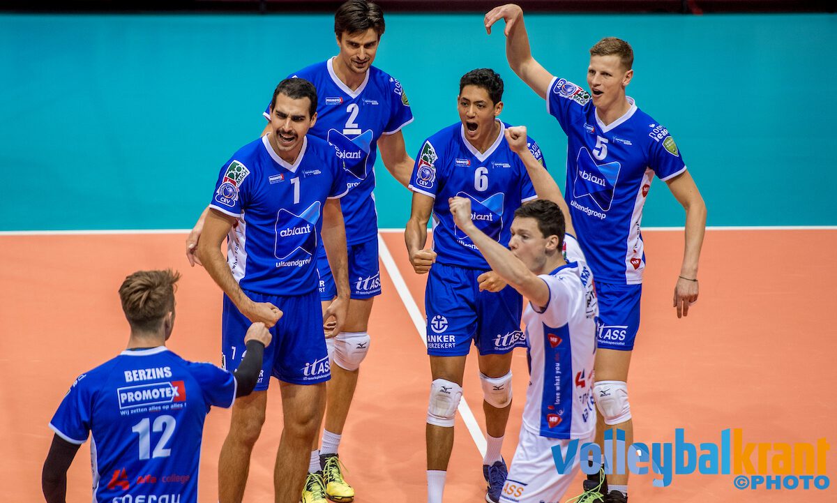 In de openingsset komen de gasten beter uit de startblokken dan Abiant Lycurgus. In de beginfase is het twee keer Pim Kamps die het verschil maakt door via het huizenhoge blok van Lycurgus te scoren. Na een score van Joris Marcelis en daarna een fout van Berzins werd het 4-8. Dat verschil bouwden de Doetinchemmers verder uit, de voor Oranje selecteerde spelverdeler Stijn Held kon al zijn aanvallers in stelling brengen. De foutenlast aan Groningse kant was te hoog. Het verschil was bij 13-20 het grootst.
