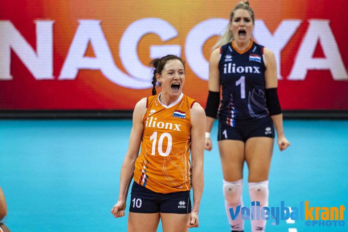 Maar nog was het niet genoeg. Oranje was op oorlogspad, met als buit de volle winst en de koppositie in de poule. Sloetjes startte set 3 met een sterke serviceserie, zodat al meteen met 8-3 een kloof was geslagen. Met goed verdedigend werk van Plak stoomde Nederland door naar een voorsprong van 15-8. Servië, zonder sterspeelster Tijana Boskovic, kwam nog wel even terug tot 16-14, maar toen vond Oranje het wel genoeg. Met enkele killblocks en omloopballen van Beliën werd even gas gegeven en was het al snel 21-16. Na de 25-20 was de buit binnen, 3-0. De koppositie in de poule is nu een feit. Allen Japan kan die nog overnemen, maar danmoet wel ruim van Brazilië worden gewonnen. In elk geval schreef het team historie, omdat Oranje op eerdere WK's nooit hoger eindigde dan een zevende plek.
