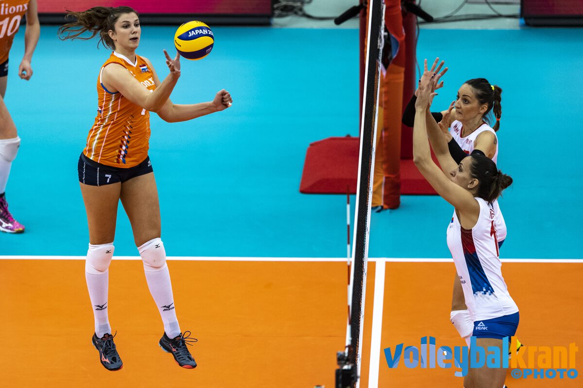 Oranje heeft zich vanochtend met grote overmacht geplaatst voor de Final Six van het WK in Japan. Europees Kampioen Servië werd door Oranje van de vloer geveegd met de setcijfers 25-16, 25-12 en 25-20.