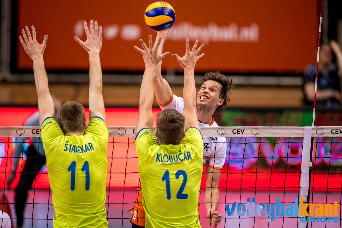 Een 20-16 voorsprong smolt als sneeuw voor de zon toen Slovenië op 21-21 langszij kwam. Dankzij een goede service van de ingevallen Tim Smit wist Nederland toch opnieuw een gaatje te slaan (23-21) en even later was het topscorer Ter Maat (22 punten) die het matchpoint benutte: 25-22.