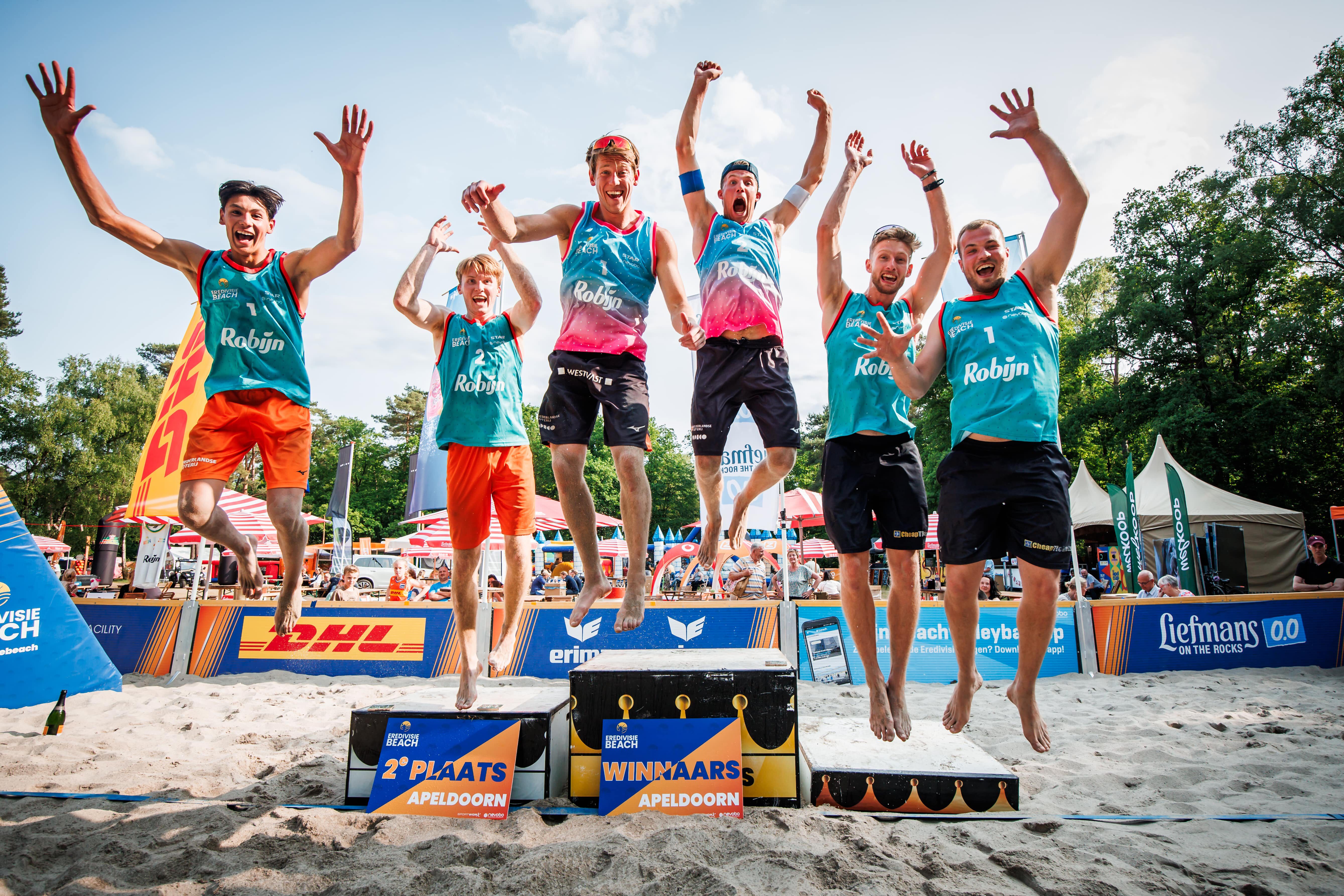 Luini/Sengers belonen eerste gezamenlijke toernooi met toernooizege Bij de mannen wisten Leon Luini en Mees Sengers direct indruk te maken. Het toernooi in Apeldoorn was hun eerste gezamenlijke optreden in de Eredivisie Beach, maar van enige opstartproblemen was geen sprake. Met een sterk en stabiel spel werkten ze zich door het schema heen en bereikten ze zonder setverlies de finale. In die eindstrijd troffen ze het duo Quinten Groenewold en Tom Sonneville, dat na een overtuigende halve finale eveneens met vertrouwen aan de start verscheen. Toch was het Luini/Sengers dat de controle behield en eigenlijk geen moment in de problemen kwam. Het brons ging knap naar Max Nieuwstad en Nikita Artamonov.