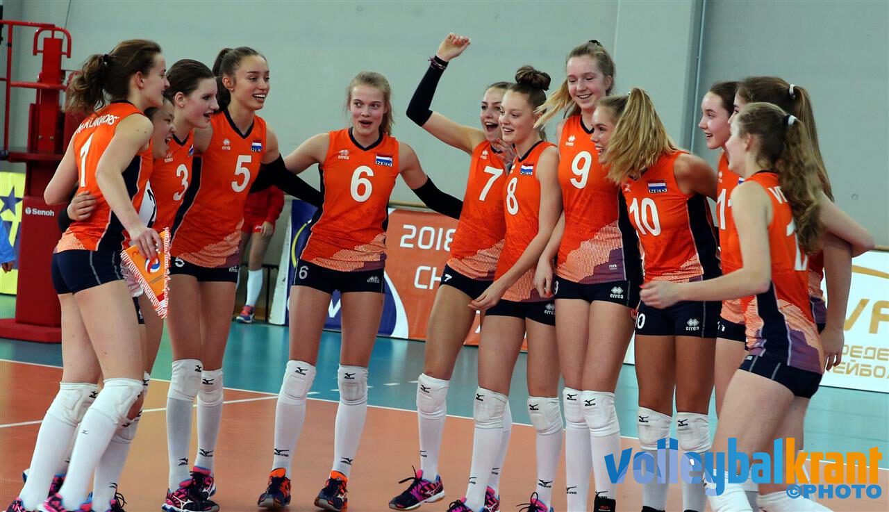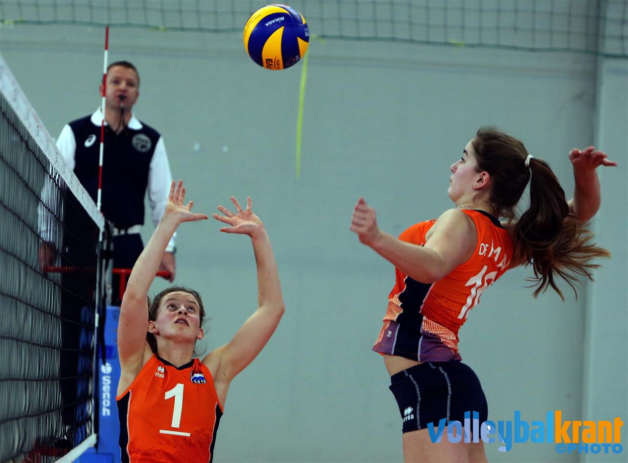 In de eerste set waren er nog geen donkere wolken voor de Oranje meisjes. Vanaf het eerste punt waren ze aan de leiding en het was de set van Iris Vos die acht punten scoorde (twee aces en ze aanvalspunten), waardoor Nederland met 25-21 won. In de tweede set stond Nederland ook steeds voor tot 10-9. Toen kwam Amelie Busch voor Duitsland aan de serve. Na tien keer te hebben geserveerd (waarvan vier aces) en de stand op 11-18 voor de Duitse meisjes, stopte ze pas. Nederland kwam daarna wel wat dichterbij, maar de set ging verloren met 18-25. In de derde set startte Nederland weer goed: 6-3 voor. Duitsland pakte echter de leiding en via 7-9 bouwde Duitsland, vooral door Sita Stockmann, die voorsprong uit. Anna Zijl bood met vier aanvalspunten tegenspel, maar kon niet verhinderen dat Duitsland deze set met 25-16 won. In de vierde set gingen de Nederlandse en Duitse meisjes gelijk op tot 6-6. In twee serviceseries liep Duitsland daarna naar een 15-7 voorsprong. Sita Stockmann zorgde er in deze set met twee aces en vier aanvalspunten voor dat haar team door kon stomen naar winst voor Duitsland: 25-17.