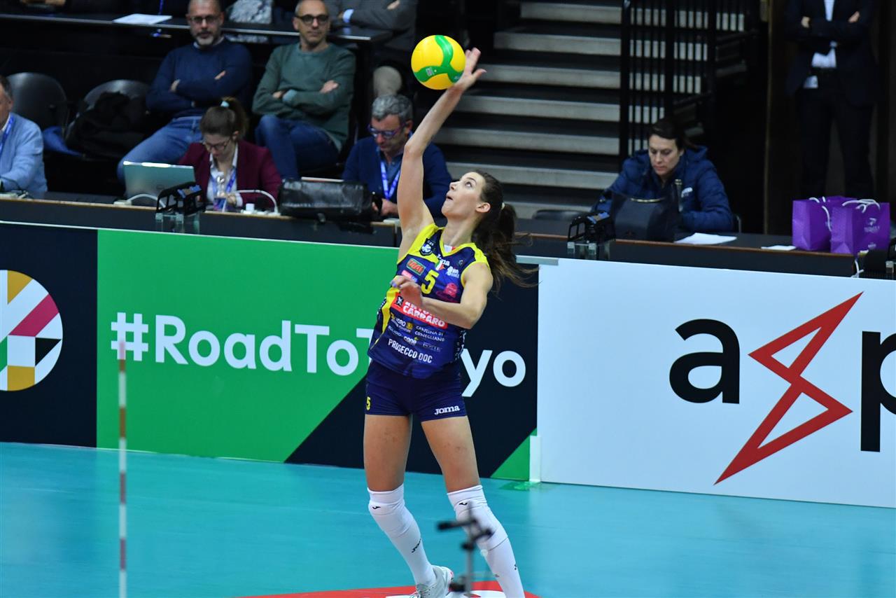 In Conegliano werd in Poule D de wedstrijd tussen de topfavoriet van dit seizoen Conegliano en Vasas uit Boedapest gespeeld. Op papier een duel tussen de reus en klein duimpje, maar in de praktijk werd het een stuk moeizamer dan verwacht. Na de gewonnen Supercup van afgelopen weekend besloot Davide Santarelli zijn hele basisteam aan de kant te laten. Een beslissing die hem duur kwam te staan, want tegen het taaie Vasas verloor het de eerste set (21-25). Alle sterspeelsters, waaronder Robin de Kruijf, moesten hun opwachting maken en daardoor leek Conegliano op weg naar een 3-1 zege (20-25, 10-25). Vasas speelde echter vrij en knokte zich anar een vijfde set (23-25). Verder dan dat liet Conegliano het niet komen. Op 14-4 mocht Egonu, met 28 punten weer eens topscoorder, het matchpoint binnenslaan. De Kruijf kwam tot 7 punten.
