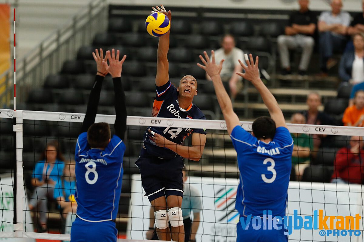 De openingsset is heel duidelijk aan een man toe te schrijven, de in de basis gestarte diagonaal Nimir Abdelaziz. Met zijn mokerslagen vanaf de servicelijn zet hij de passinglijn van Moldavië zodanig onder druk dat ze aan aanvallen amper toekomen. En anders zijn daar de blokkeerders van Oranje die in de weg hangen. Jasper Diefenbach en Michaël Parkinson pakken ieder al twee blokpunten.