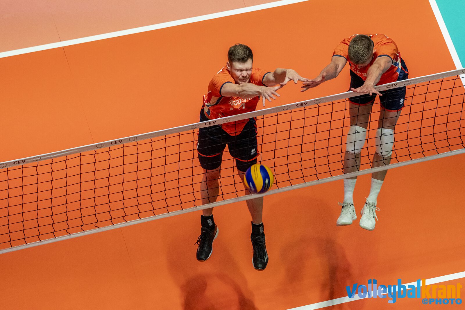 Met Gijs van Solkema als verrassende startende spelverdeler bij oranje kon Nederland meteen druk zetten op de nummer 23 van Europa. Naast Van Solkema had Piazza gekozen voor Fabian Plak, Michaël Parkinson op het midden, aanvoerder Nimir Abdelaziz op de diagonaal, Thijs ter Horst en Maarten van Garderen aan de buitenkant. Libero Just Dronkers completeerde de basis.