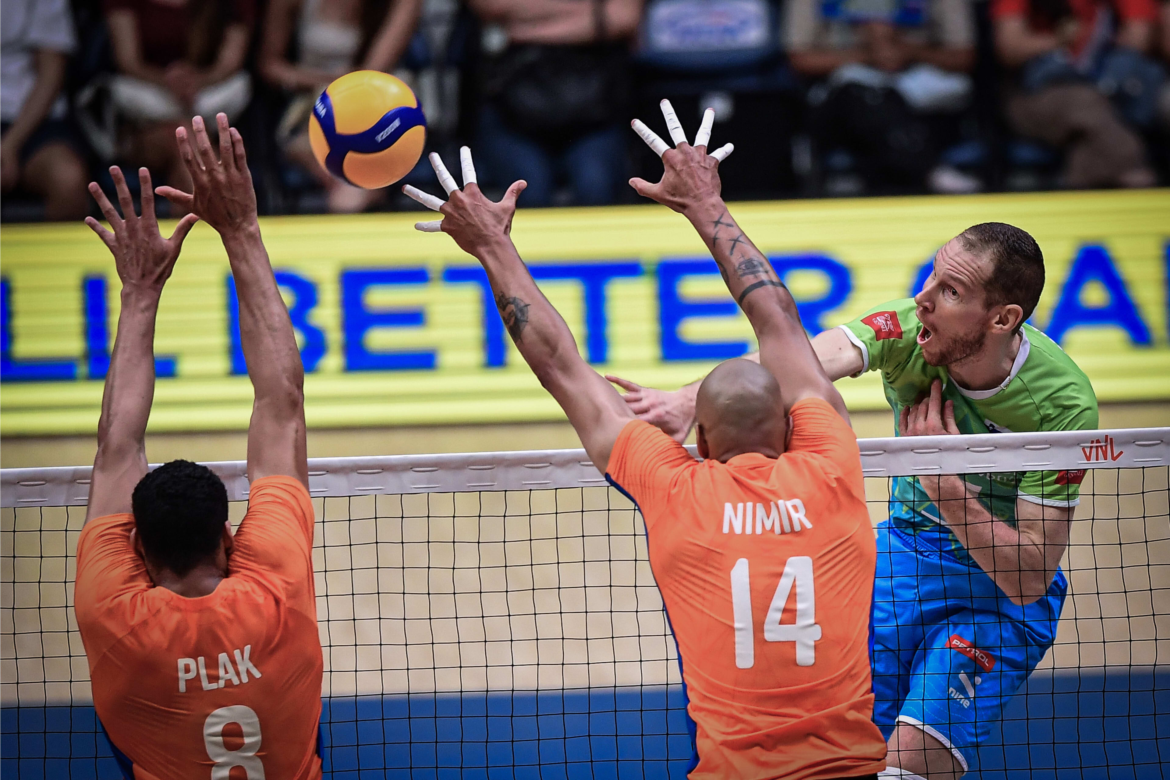 Voor de derde set koos Piazza voor Ter Horst op de plek van Van Garderen. Het was echter Slovenië dat door drukte. Verdedigend lukte het Nederland niet om de variatie van de Slovenen te pareren en daarnaast werd serverend te weinig druk geleverd. Maar na een stand van 11-16 knokten de Lange Mannen zich terug. Ter Horst kwam er een aantal keer goed door en Abdelaziz bleef gevaarlijk. Tot 20-21 bleef Oranje dichtbij, maar helaas sloegen de Slovenen weer toe. De middenaanval van Slovenië was niet te stoppen en de ervaren buitenmannen gaven thuis. Via 22-25 kwam er een einde aan de VNL.