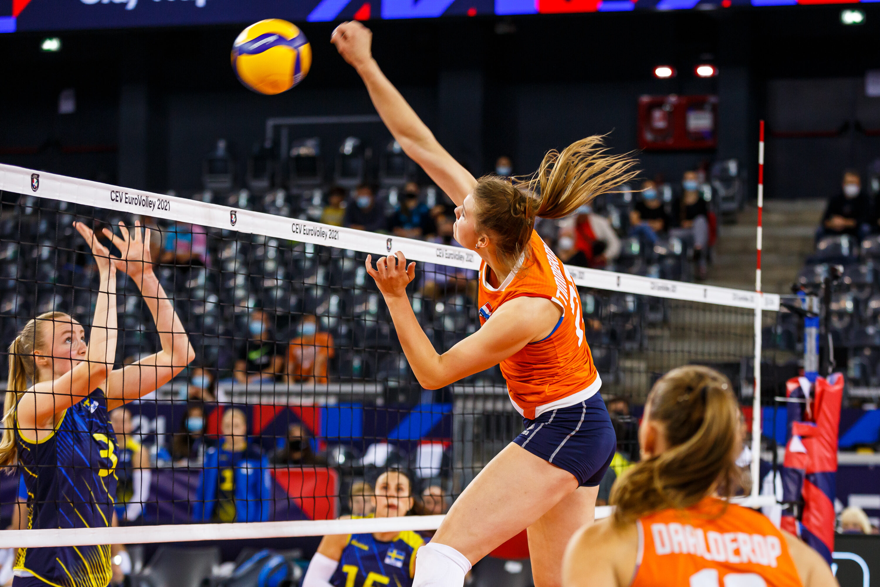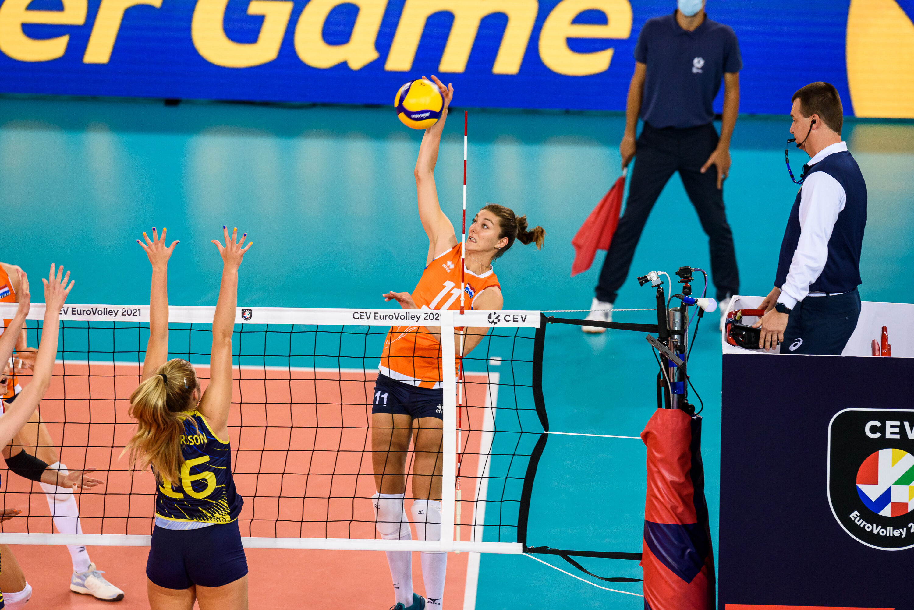 Met dezelfde opstelling als tegen Turkije ging Nederland goed van start aan de hand van Nika Daalderop. Zweden bleek echter een taaie opponent en bleef tot de slotfase in het spoor van Oranje. Na 18-18 maakte de Nederlandse ploeg echter vier punten op rij, met onder meer een schitterend killblock van Juliët Lohuis, en was het beslissende gat geslagen. Op het setpoint was het de ene invalster die de andere invalster aanspeelde, want via Dijkema kon Baijens door het midden het punt binnenslaan.