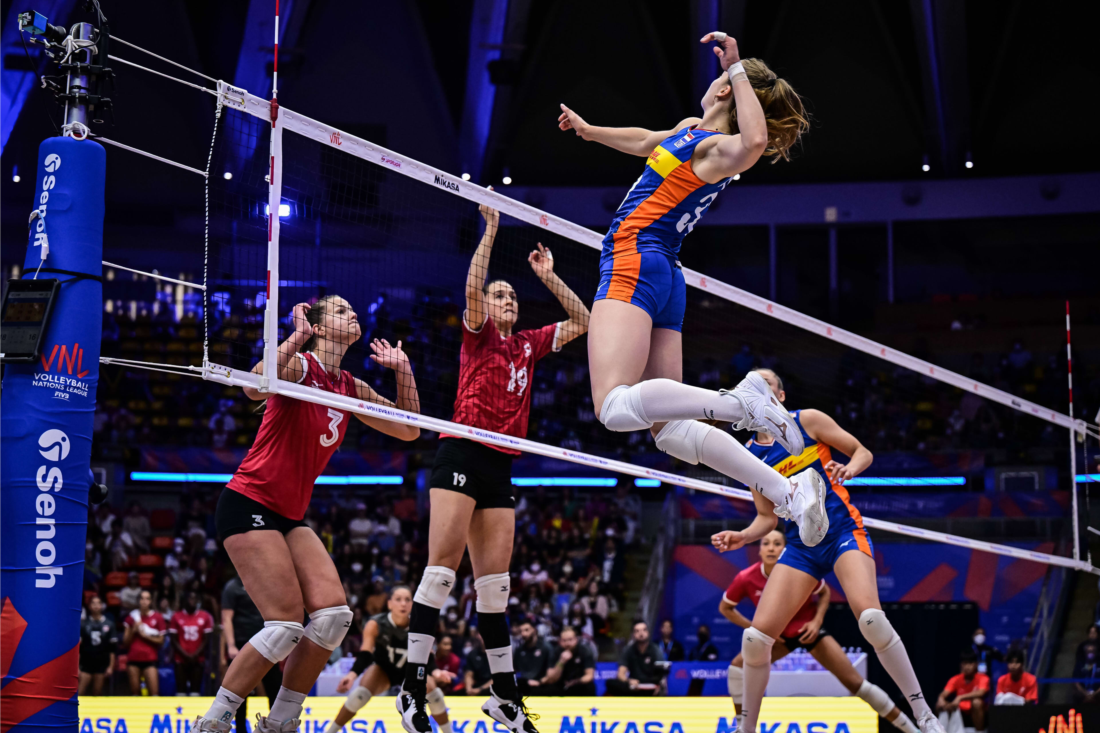 Net als Nederland had ook Canada de juiste vorm te pakken deze week. Het won eerder in deze derde week al van Kroatië en stuntte met een knappe overwinning op grootmacht Brazilië. De wedstrijd tegen Italië ging daarentegen nipt verloren. Canada is geen hoogvlieger in de VNL, maar met blikvangers Alexa Gray, de MVP van de Italiaanse competitie en Kiera van Ryk, diagonaal met Nederlandse roots, heeft het team toch een aantal topspeelsters in de gelederen. Canada staat onder leiding van Shannon Winzer, de enige vrouwelijke hoofdcoach van een land in de VNL.