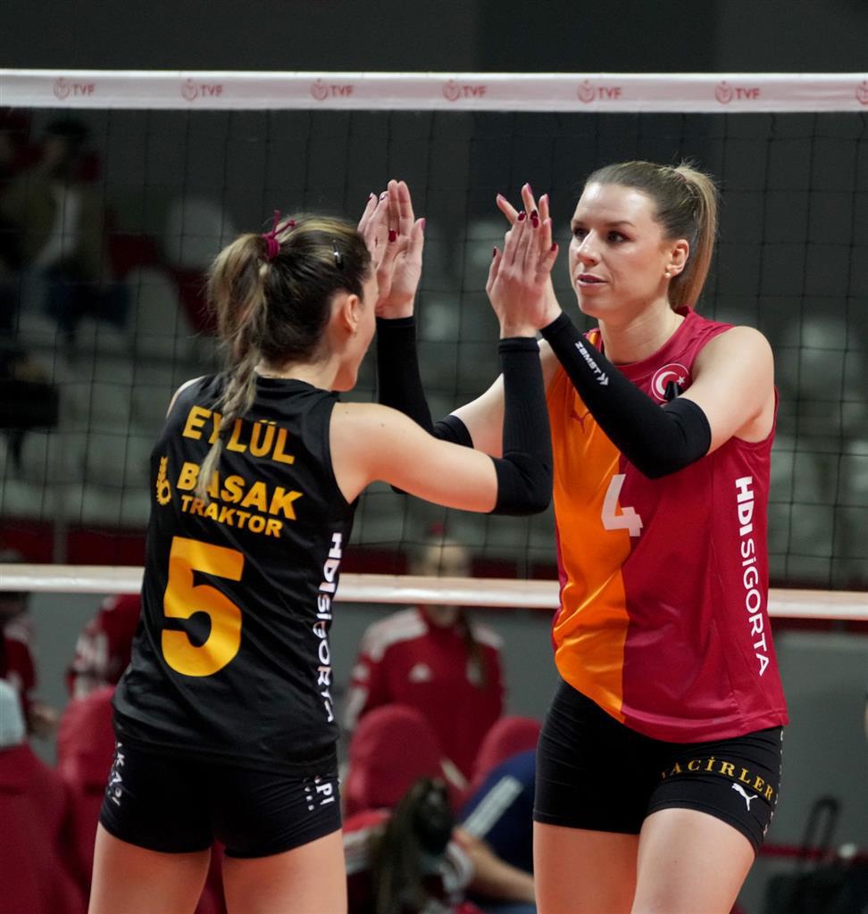 Na de ruime zege van Galatasaray in het eerste duel had de Turkse ploeg in de return het een stuk lastiger met het Griekse Olympiakos Piraeus. De gasten namen zelfs dapper een 1-2 voorsprong, maar Galatasaray stelde op tijd orde op zaken en won na de eerste set ook de vierde set. De vijfde set, die geen invloed meer had op het vervolg van het toernooi, ging daarna ook nog naar de thuisploeg (25-13, 20-25, 22-25, 25-9, 15-9). Britt Bongaerts pakte vier punten mee (3 aces) en Eline Timmerman scoorde tien keer.