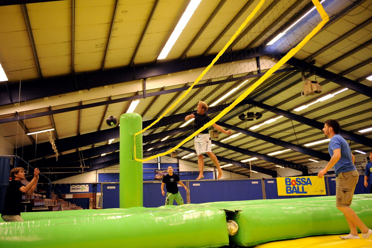Bossaball is een combinatie van voetbal, volleybal en turnen. Op een groot opblaasbaar volleybalveld, met aan beide zijdes van het net een trampoline, spelen twee teams tegen elkaar. Deze opkomende sport is aantrekkelijk om naar te kijken en dus niet voor niets uitgekozen als demonstratiesport.