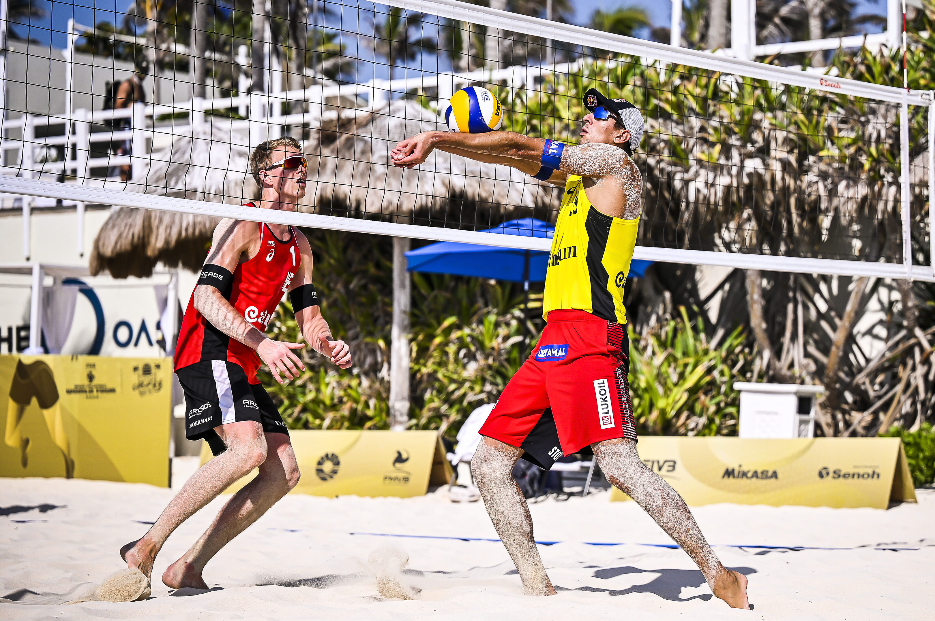 Ditzelfde lot geldt voor de twee andere mannenteams. Varenhorst/Van de Velde opende (na het missen van het eerste toernooi) hun Mexicaanse avontuur uitstekend met een overduidelijke winst op Semenov/Leshukov uit Rusland (21-14, 21-13). Later moest het helaas buigen voor de winnaar van vorige week en beste team van de afgelopen jaren Mol/Sørum (18-21 en 16-21). Christiaan en Steven spelen vanavond om 21.00 de tussenronde tegen Krattiger/Breer.