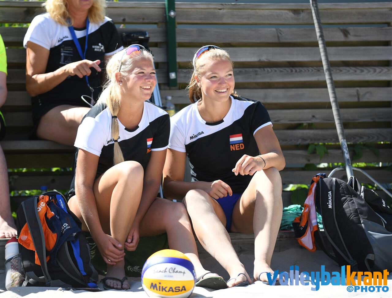 Op naar de kwartfinale, daarin was Rusland de tegenstander. Eigenlijk kwamen de Nederlandse meiden in deze wedstrijd geen moment in de problemen, ze wonnen met overmacht via setstanden 21-14 en 21-17. En dus ook een damesteam in de halve finale. De dames mogen morgenochtend al vroeg aan de bak, om 9uur start de wedstrijd. Tegenstanders zijn Scampoli/Nicoluit Italië. Ook voor de resultaten uit het meidentoernooi laten we u morgen weten hoe het is afgelopen.