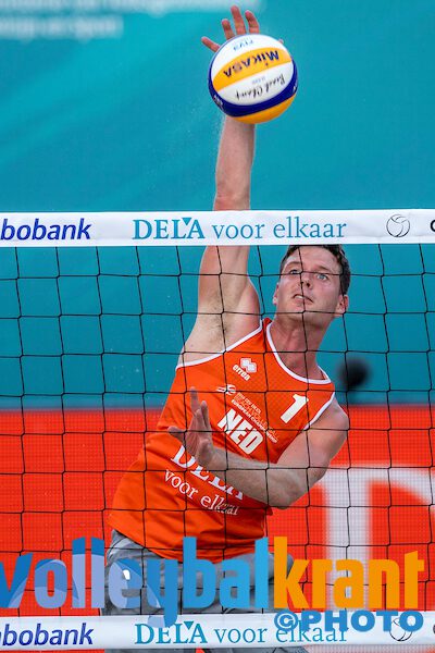 Gisteren was de openingswedstrijd van het EK beachvolleybal in eigen land. Nadat diverse knappe koppen het woord hadden gehad, hadden Boehlé/van de Velde de eer om de eerste wedstrijd te spelen in Apeldoorn. En dat ging ze goed af, de Italianen Caminati/Rossi gaven goed partij en sleepten er nog een derde set uit, maar daarin waren de Nederlanders overtuigend de betere ploeg.