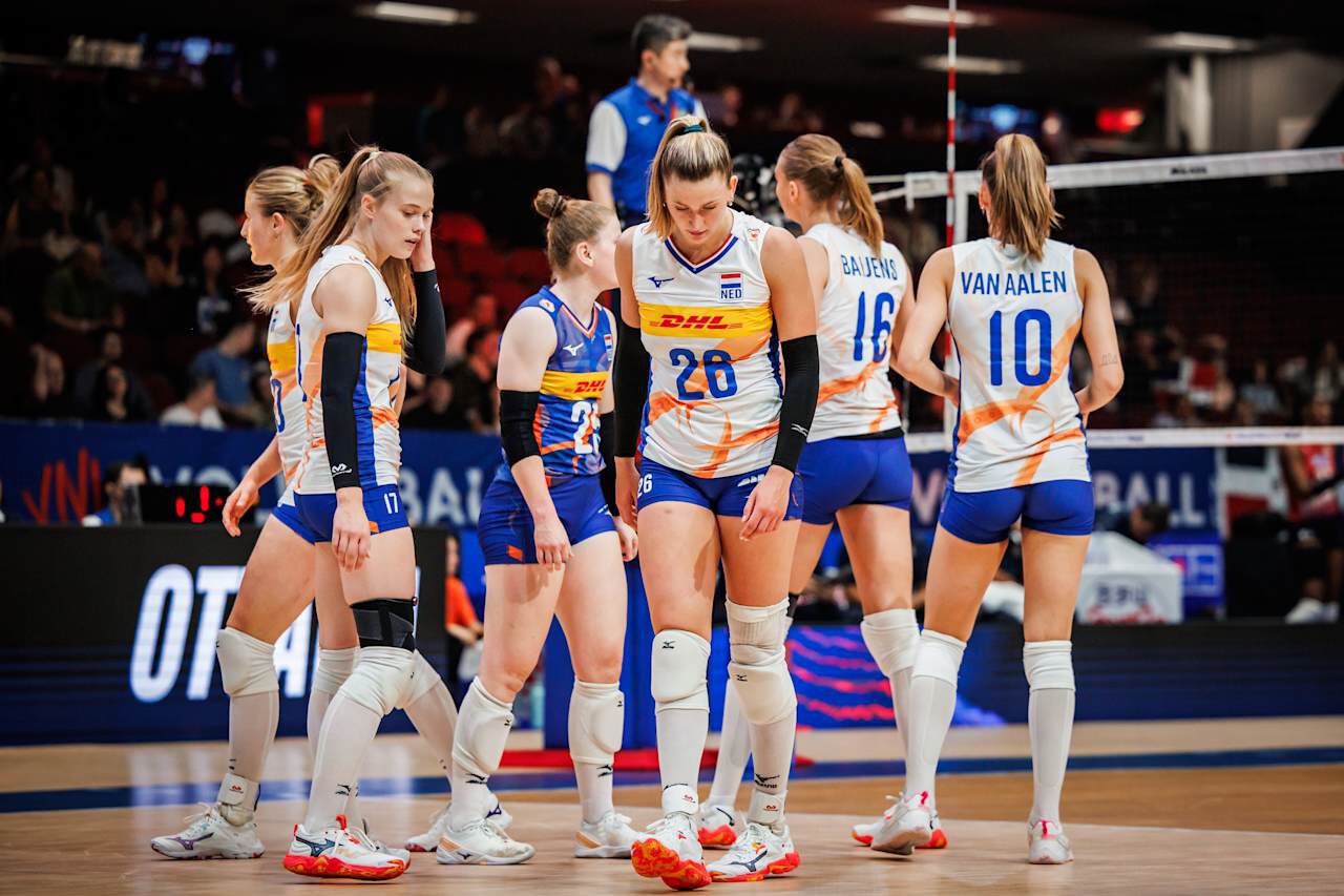 Snelle achterstand In de vijfde set kwam Nederland op een razendsnelle achterstand van zes punten. Koslowski bracht opnieuw Van de Vosse binnen de lijnen en met haar in het veld wist het jonge Oranje zich toch nog terug te knokken. Het kon echter niet voorkomen dat de Dominicaanse Republiek twee matchpoints kreeg. Van de Vosse werkte nog één weg, ze zou zes punten maken in deze vijfde set, maar op het tweede was het topscorer Brayelin Martinez (26 punten) die genadeloos binnen sloeg en het matchpoint verzilverde voor haar team. Gaila Gonzalez scoorde één puntje minder (25 punten). Namens de Volleybaldames waren Dambrink (22 punten), Baijens (15 punten) en Van de Vosse (14 punten) scorend erg sterk. Vos en Stuut eindigden eveneens in de dubbele cijfers.