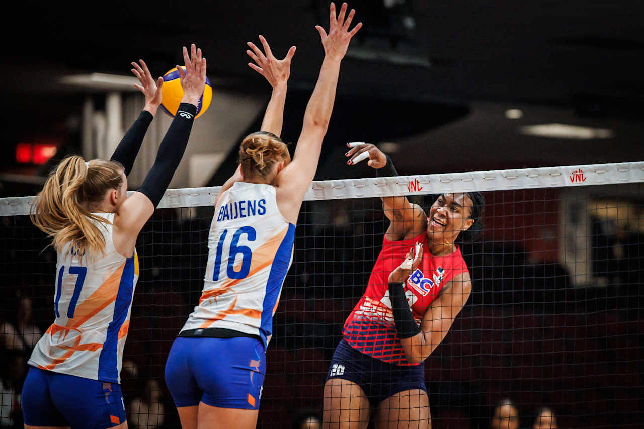 Er was voor Nederland nauwelijks tijd om na te genieten van de knappe overwinning op Canada (3-1), want amper twintig uur later mochten de Volleybaldames alweer het veld op voor de derde wedstrijd van deze week tegen de Dominicaanse Republiek. Ook voor de Dominicaanse ploeg was het al het derde duel in drie dagen na de gewonnen vijfsetter tegen Servië en het verlies in vier sets tegen Bulgarije. Het team heeft veel zeer ervaren speelsters, waaronder de zusjes Martinez en de linkshandige diagonaal Gonzalez, en staat al meer dan vijftien jaar onder leiding van bondscoach Marcos Kwiek.