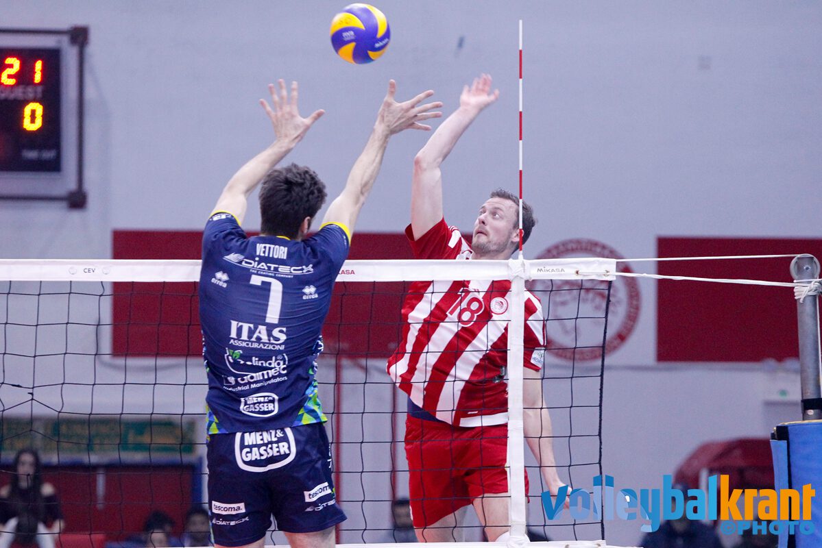 Voor de return tegen Olympiacos kan coach Angelo Lorenzetti, die al 100 wedstrijden de coach is van Trentino, beschikken over een vrijwel fitte selectie. Alleen middenman Srecko Lisinac ontbreekt in de line-up. Afgelopen weekend had de ploeg van Maarten van Garderen een goede generale, er werd met 3-1 gewonnen op bezoek bij het in goede vorm verkerende Milano waar Nimir Abdelaziz de troepen aanvoert.