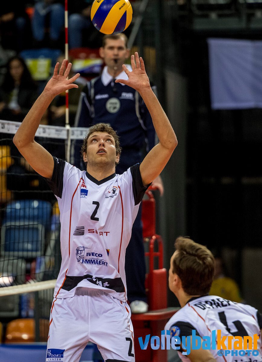 Door de winst in de Champions League van afgelopen week zit het met de vorm en het vertrouwen wel goed bij Maaseik. Lindemans Aalst daarentegen, reisde met slechts negen spelers af. De start van de wedstrijd was meteen voor de thuisploeg, Jelte Maan maakte het setpunt op 25/20. In de tweede set werd het verschil nog groter, via 20/15 pakten ze deze set ook. Lindemans Aalst deed wat terug in de derde set en kwam tot 17/17 gelijk. Met minimaal verschil wonnen ze de eindspurt en zorgden voor 2-1 in sets. In de vierde set was Maaseik weer net zo sterk als in het begin van de wedstrijd, via wederom een 20/15 voorsprong pakten ze de set en de wedstrijd (25-20, 25-18, 23-25, 25-17). Jelte Maan kwam tot 17 punten voor Maaseik, Just Dronkers speelde de gehele wedstrijd. Wessel Keemink was bij Aalst goed voor 1 punt.