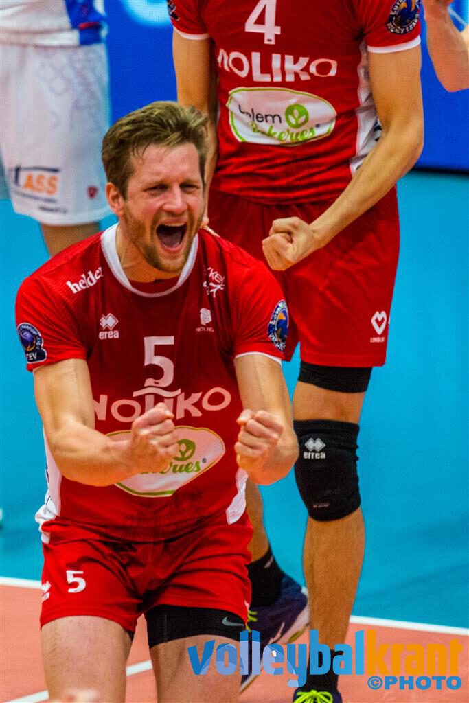 In de derde set had Maaseik in de zowel de eerste als de tweede technische time-out twee punten voorsprong. Het laatste deel van deze set was erg spannend, Maaseik wist dat het er bijna was terwijl de ploeg uit Vlaanderen alle energie gaf die er nog in zat. Met een loeiharde pipe-aanval besloot de Luxemburger Kamil Rychlicki dat het feest in Maaseik kon beginnen (25/23, 25/18, 25/22). Jolan Cox en aanvoerder Jelte Maan werden beide topscoorder met 16 punten. Vooraf aan de wedstrijd maakte de Canadese spelverdeler Jay Blankeneau bekend dat hij zijn contract bij Maaseik heeft verlengd. Kijk hier voor foto’s van Be Volley.