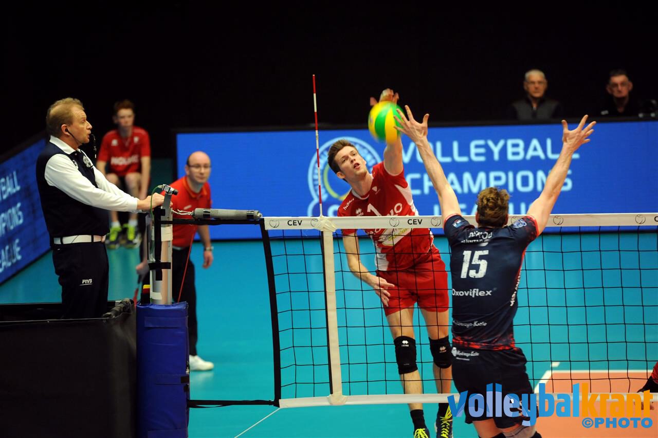 Noliko Maaseik speelde in groep E van de Champions League tegen het Poolse Zaksa Kedzierzyn-Kozle. De verschillen in de eerste waren zeer klein, tot op 24 punten de stand in evenwicht kwam en Bruno zorgde voor het eerste setpunt. Waarna een aanvalsfout aan Poolse kant zorgde voor de 1-0. De tweede set kende een gelijk spelbeeld, tot 24/24 gingen de teams gelijk op. De Belgische international Sam Deroo zette de Polen eerst op setpunt en maakte het daarna zelf af. Maaseik pakte in de derde set een kleine voorsprong welke werd vergroot tot 22/18. Op 24/20 zorgde Nicolas Bruno voor de voorsprong in de wedstrijd. In de vierde set was de spannig terug en ging het gelijk op tot 18/18. Nu zorgde Deroo voor het punt op 19-22, en door sterk te blokkeren pakten ze het setpunt. Waarna een foute serve van Bruno de setstand weer in evenwicht bracht. In de beslissende set werd met een 8/4 voorsprong voor Maaseik van kant gewisseld maar de Polen kwamen terug tot 8/7. Hetzelfde gebeurde hierna, 10/7 en de Polen kwamen terug tot 11/10. Tot 15/15 ging het gelijk op maar door een foutserve van Deroo en een snoeiharde aanval van Tammemaa hadden de Limburgers een feestje te vieren. Ze hadden gezorgd voor de eerste verliespartij van Zaksa in de groepsfase (26-24 24-26 25-20 22-25 17-15). Jelte Maan scoorde 13 keer en Just Dronkers speelde de gehele wedstrijd als libero. Jolan Cox werd topscoorder met 32 punten, waarvan 4 aces.