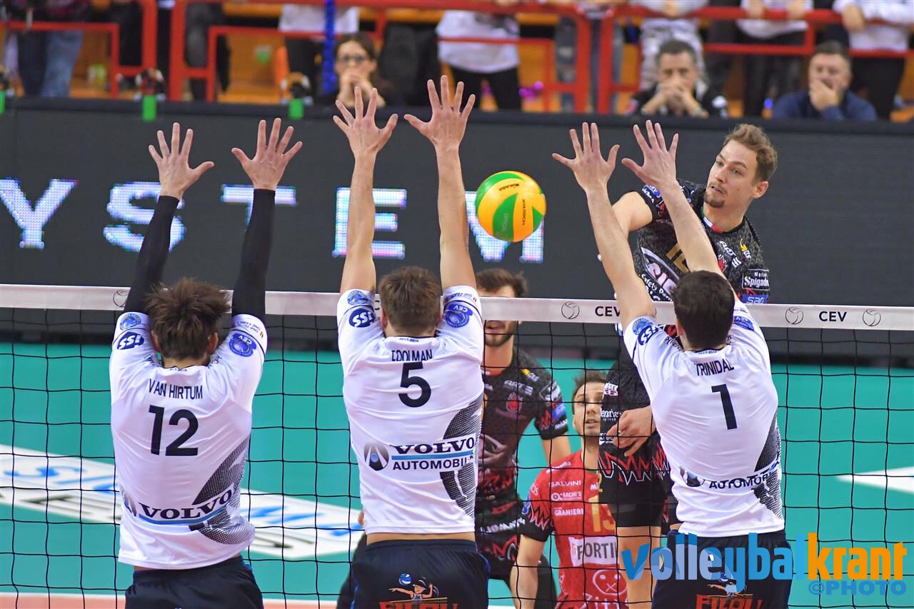 Knack Roeselare ging op bezoek bij Sir Colussi Sicoma Perugia. De Italianen wonnen de wedstrijd met 3-0 (25/16, 25/22, 25/17). Aaron Joseph Russell (Perugia) werd topscoorder met 18 punten. Par-Ky Menen speelde de return in de Challenge Cup tegen het Estse Pärnu VK. De mannen uit Menen hebben door de 3-0 winst de kwartfinale bereikt (25/21, 25/21, 25/20). Hierin spelen ze tegen de winnaar van het duel tussen Lokomotiv Baku en Olympiacos Piraeus.