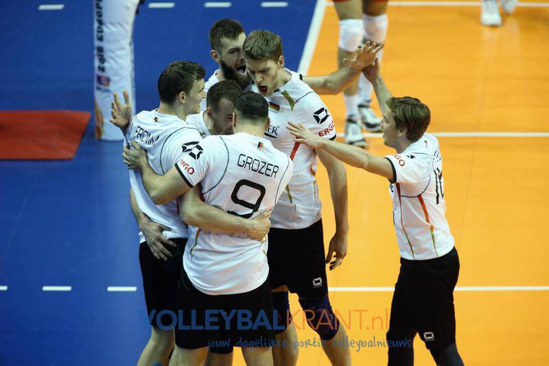 In poule A wonnen Duitsland en Polen allebei hun eerste twee wedstrijden. Duitsland deed dit zonder setverlies; Polen liet een set liggen. De vier teams in de poule spelen vandaag hun laatste wedstrijd, maar zowel Servië als België staan nog op nul punten.