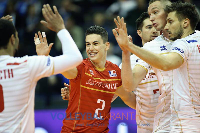 In poule B staat Frankrijk op de eerste positie. Les Bleus won tweemaal en heeft zes punten. Ook Rusland heeft zes punten, maar kwam al driemaal in actie. Bulgarije bevindt zich drie punten achter Rusland en kan qua puntenaantal nog op gelijke hoogte komen door met 3-0 of 3-1 van Frankrijk te winnen.Voor Bulgarije is dat echter niet genoeg om Rusland te passeren op de ranglijst; de Russen hebben dan alsnog een beter setsaldo. Ook hier bepaalt de uitslag tussen Bulgarije en Frankrijk wie er op de eerste en tweede positie eindigt in de poule. Finland is uitgespeeld en staat met lege handen onderaan.