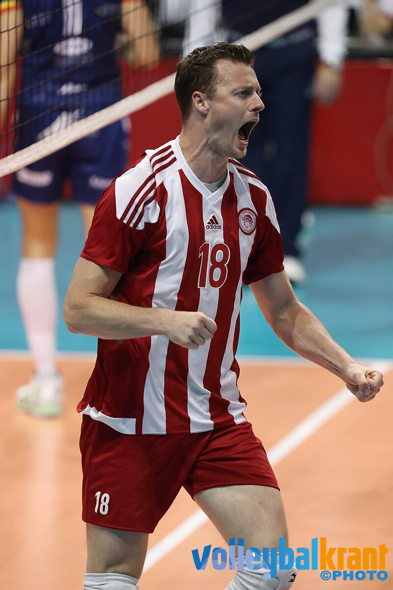 Jeroen Rauwerdink is met Olympiacos Piraeus doorgedrongen tot de kwartfinales van de CEV Cup, op donderdagavond wonnen de Grieken thuis met 3-1 van het Turkse Istanbul BBSK. Daarmee is het totaal aantal Nederlanders dat bij de laatste acht teams zit opgelopen tot vijf. Robbert Andringa zag zijn team Olsztyn de weg versperd worden door het Russische Kuzbass Kemerovo, dat op bezoek in Polen met 3-1 wist te winnen.