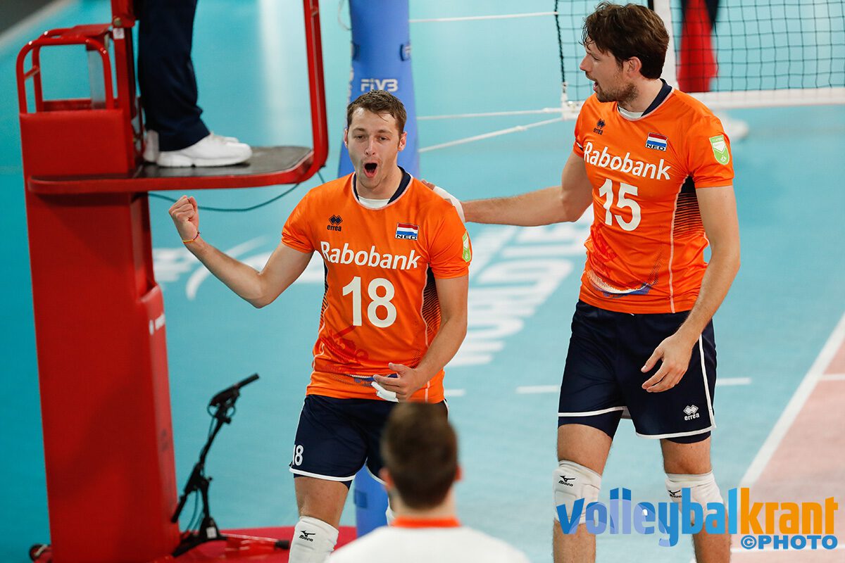 Bondscoach Gido Vermeulen startte met de ploeg die vorige week de wedstrijd tegen Egypte wist te keren na een 2-0 achterstand. In de gloednieuwe topsporthal van de Sportcampus Zuiderpark liet hij Daan van Haarlem, Thijs ter Horst, Jasper Diefenbach, Wouter ter Maat, Robbert Andringa, Thomas Koelewijn en libero Dirk Sparidans starten.